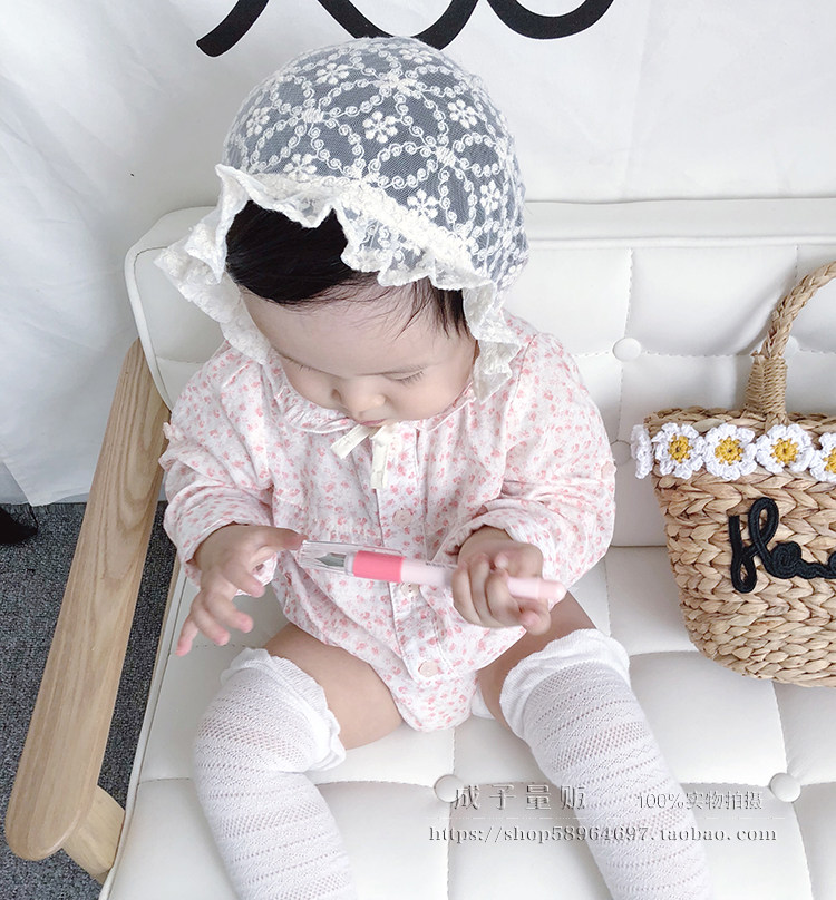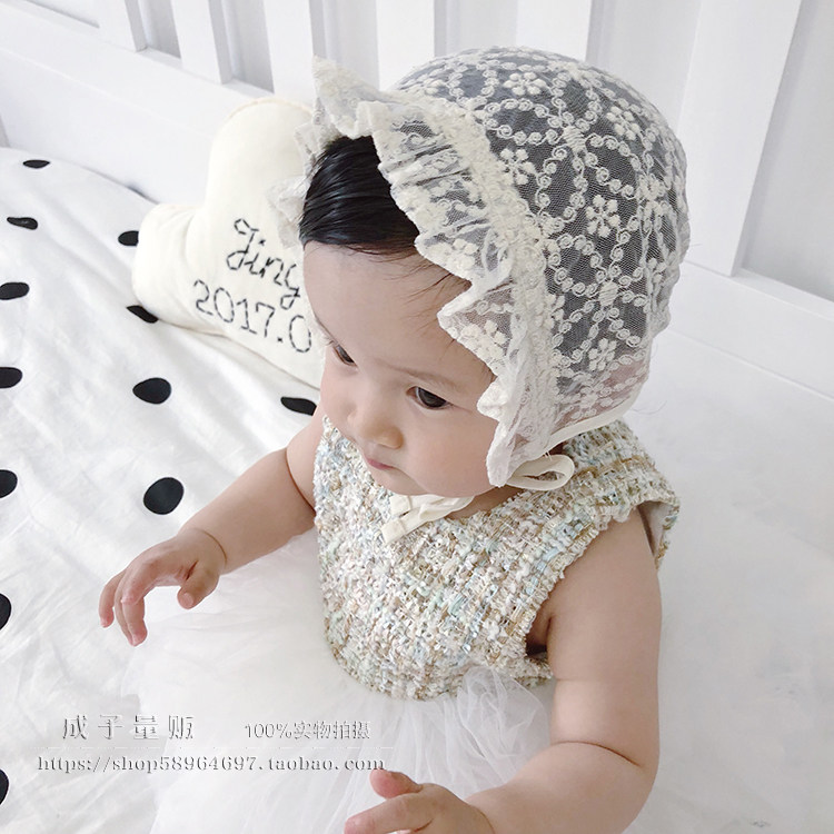 여성 아기 얇은 통기성 6 월 레이스 여름 레이스 업 백일 태아 모자 보름달 신생아 아기 소녀 코트 모자