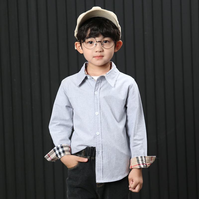 소년 셔츠 봄과 가을 면 옥스포드 회전 아기의 셔츠 격자 무늬 긴 소매 탑 한국 스타일 어린이 흰색 셔츠 유행스토어 가기
