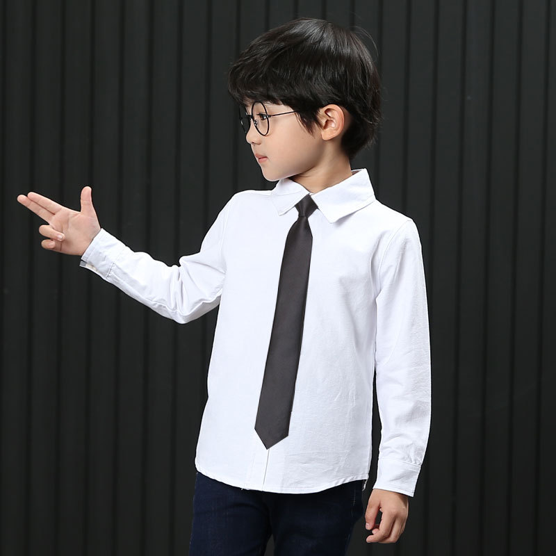 소년 셔츠 봄과 가을 면 옥스포드 회전 아기의 셔츠 격자 무늬 긴 소매 탑 한국 스타일 어린이 흰색 셔츠 유행
