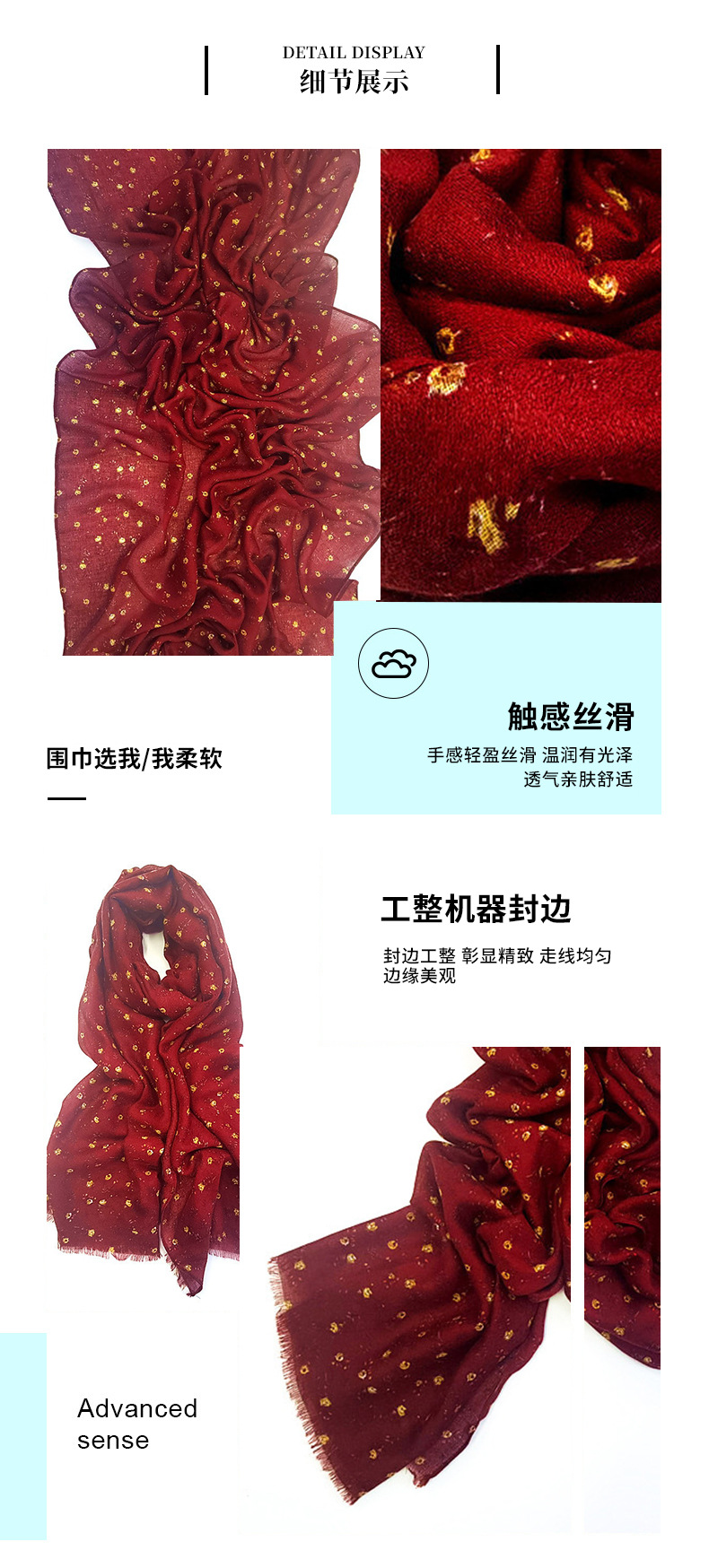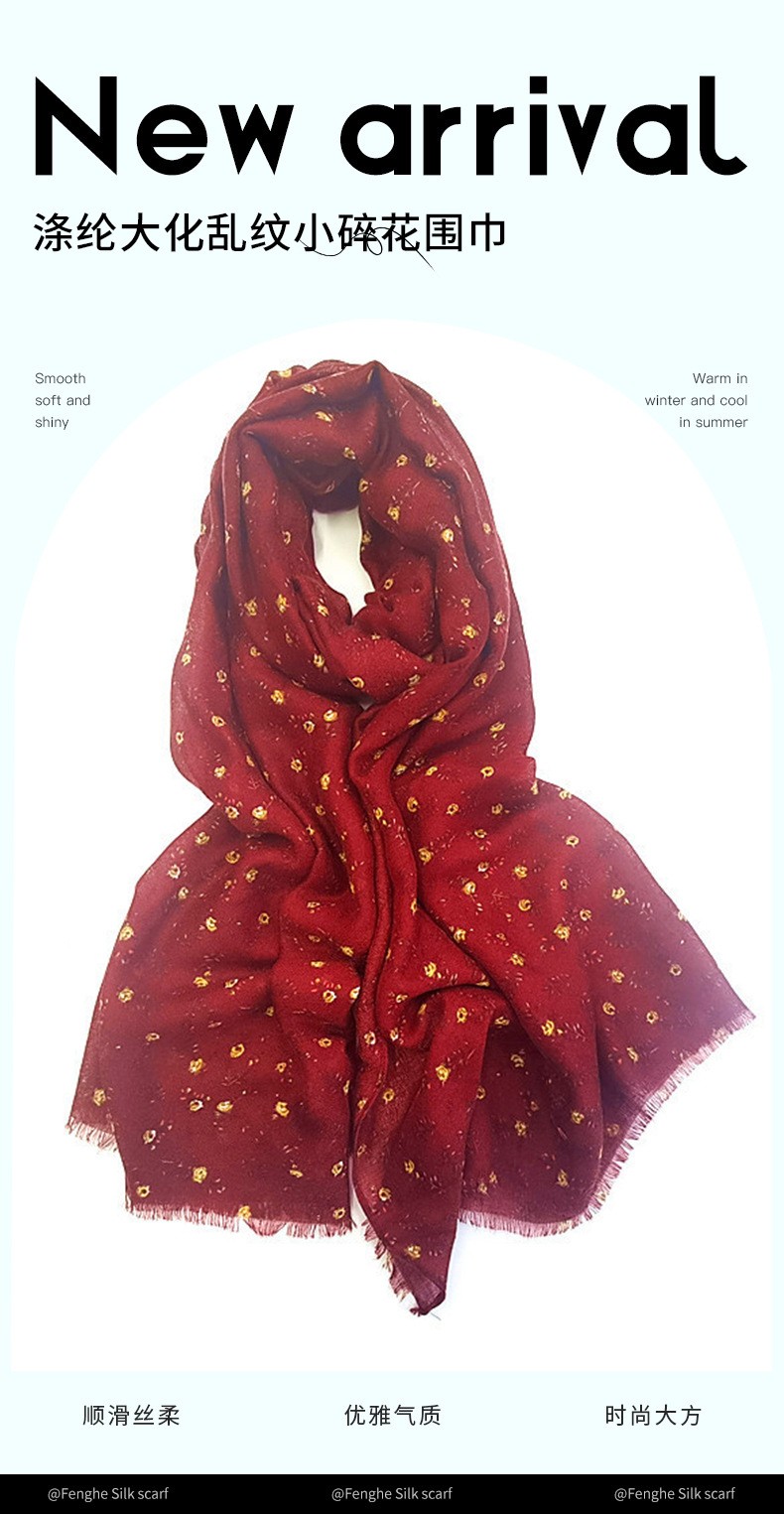 폴리에스터 랜덤 패턴 예술적 질감 작은 꽃무늬 스카프 직조 실크 메쉬 프린트 봄 가을 여성용 숄 실크 스카프 예술적 스타일