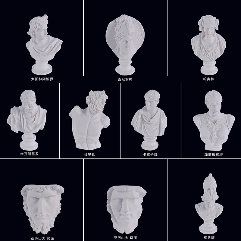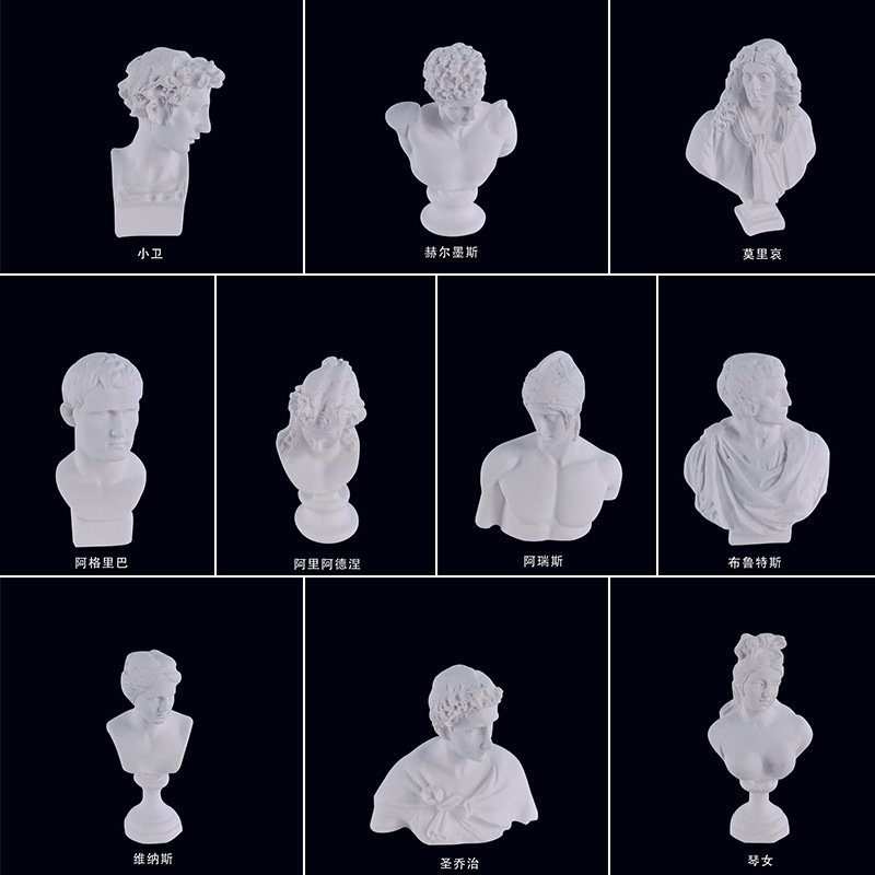10 세트 수지 작은 석고 그림 미니 그림 장식품 미술 교구 그림 스케치 머리 초상화