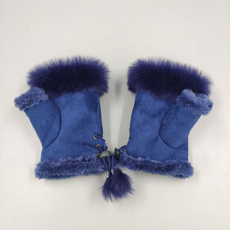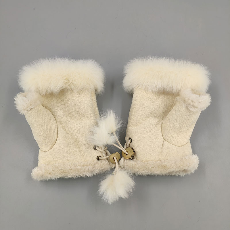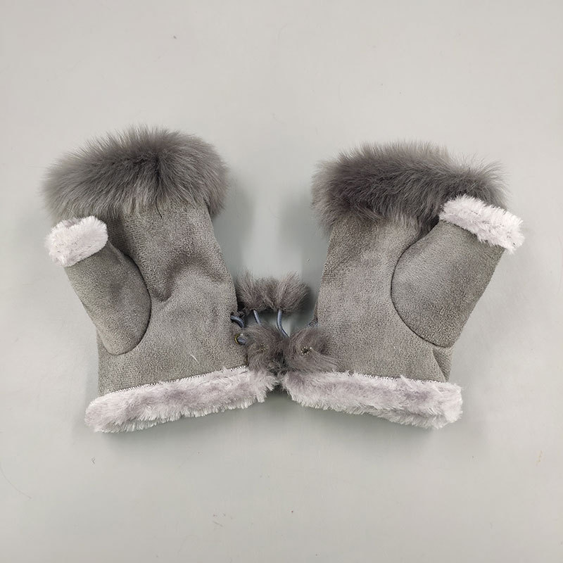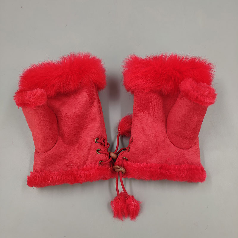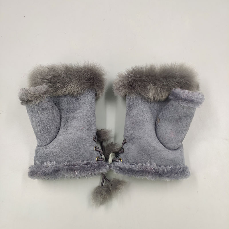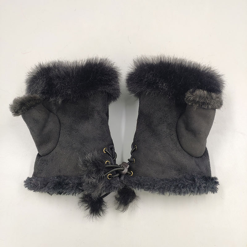 토끼 모피 반 손가락 장갑 겨울 두꺼운 따뜻한 실내 여성의 모조 토끼 모피 노출 손가락 인공 머리 컴퓨터 타이핑 장갑