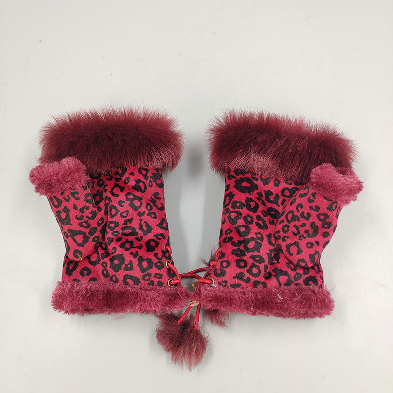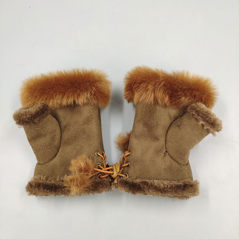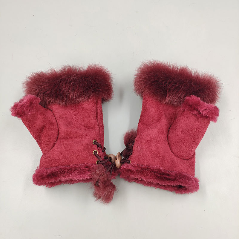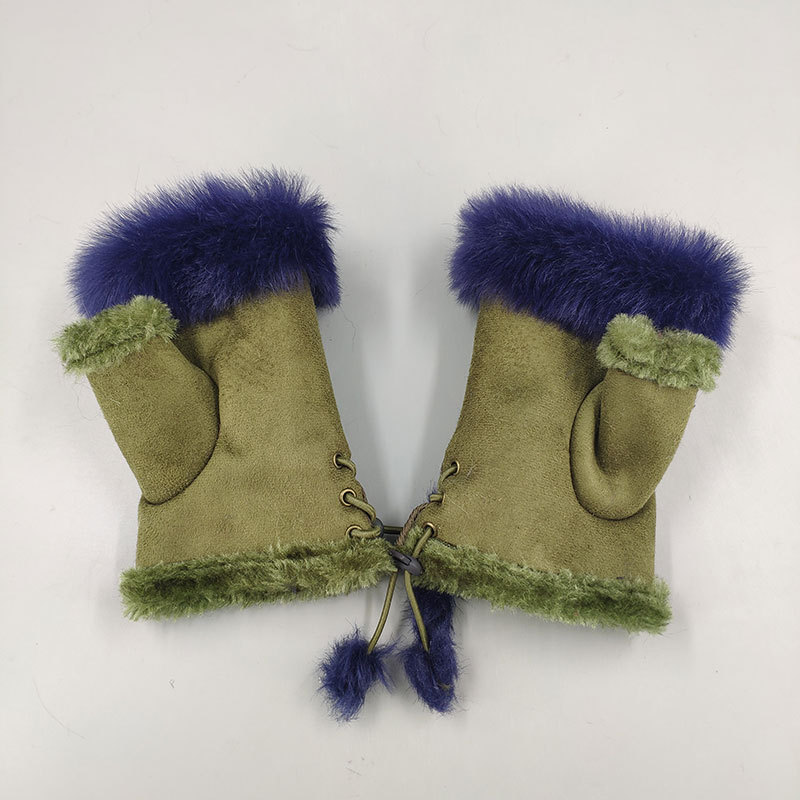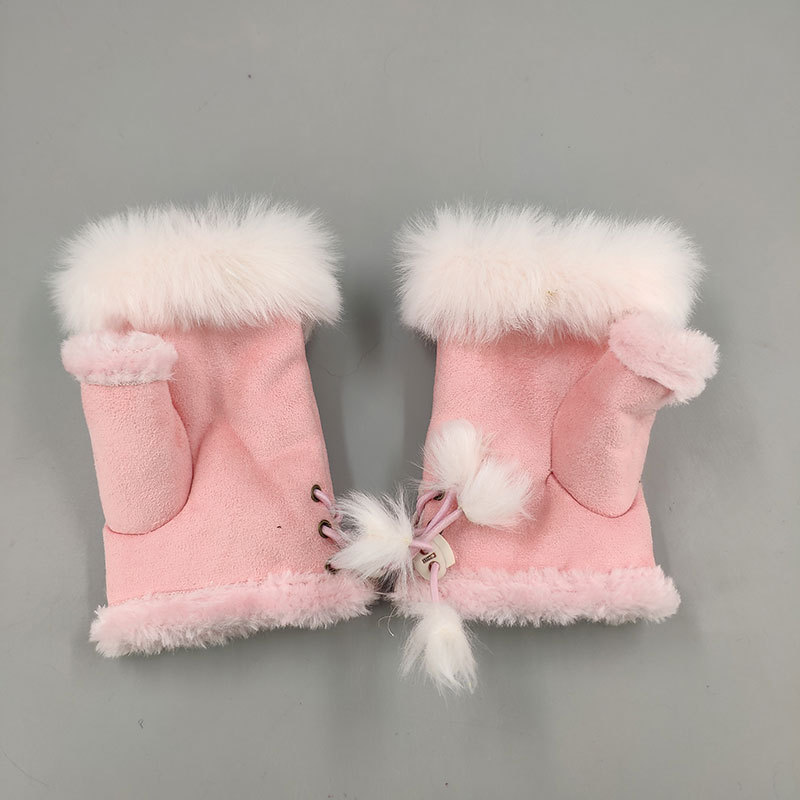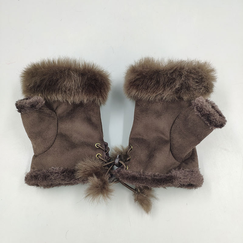 토끼 모피 반 손가락 장갑 겨울 두꺼운 따뜻한 실내 여성의 모조 토끼 모피 노출 손가락 인공 머리 컴퓨터 타이핑 장갑