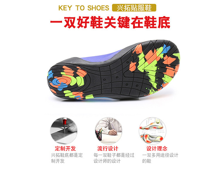 Xingtuo 제조업체는 야외용 속건성 워터 슈즈, 비치 슈즈, 양말, 홈 피트니스 요가용 통기성 런닝머신을 도매합니다.