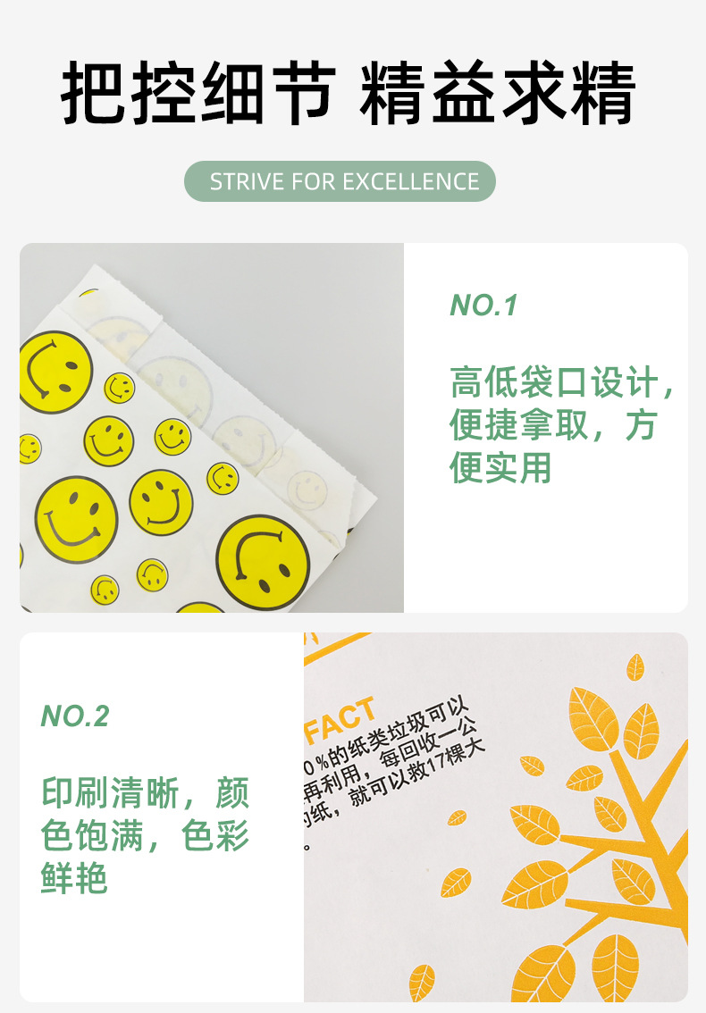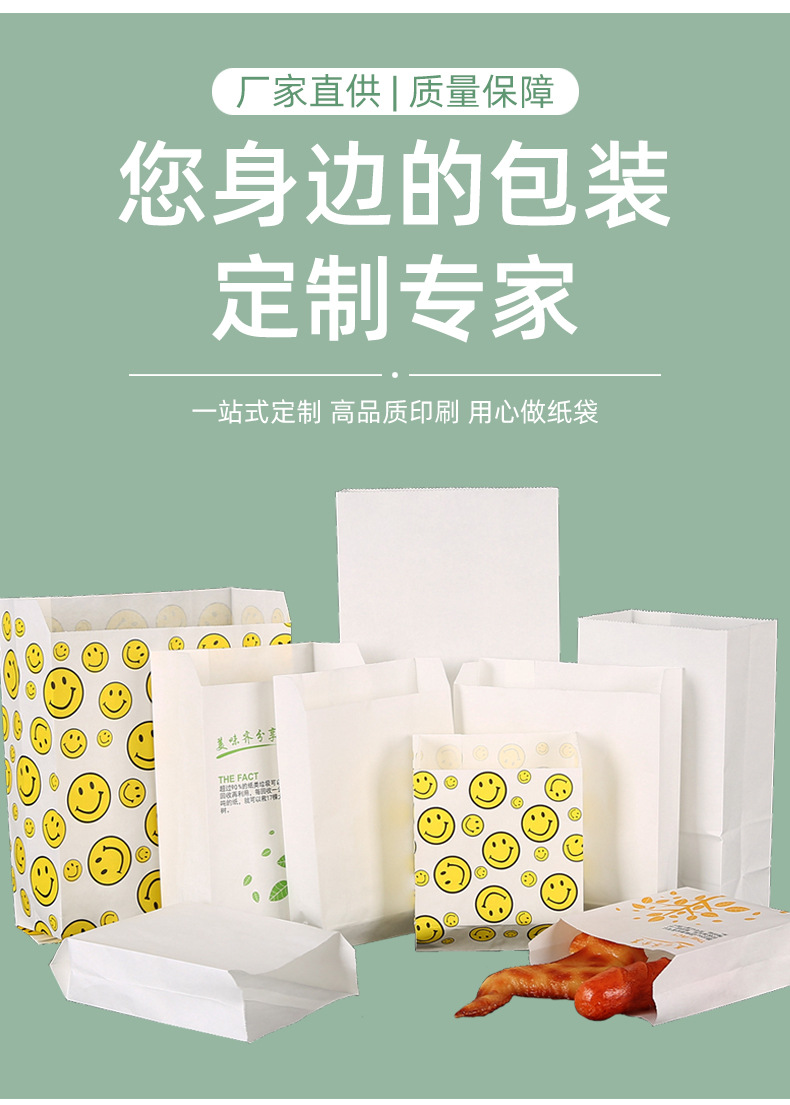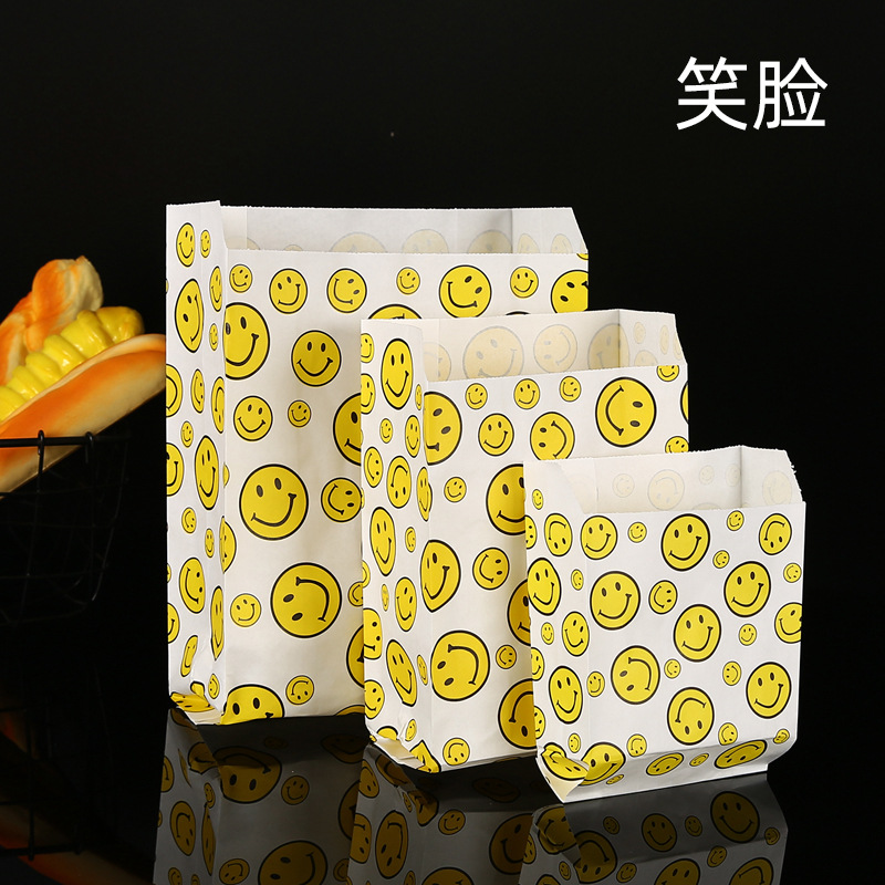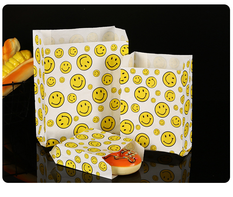 • 50g 기름 방지 웃는 얼굴 뾰족한 바닥 가방; 큰 웃는 얼굴: 높이 26 * 폭 18 * 측면 7.5 (100)