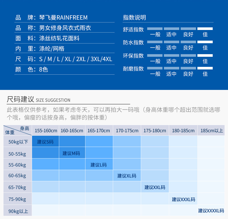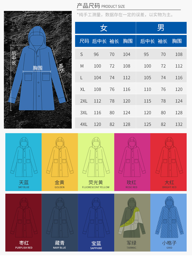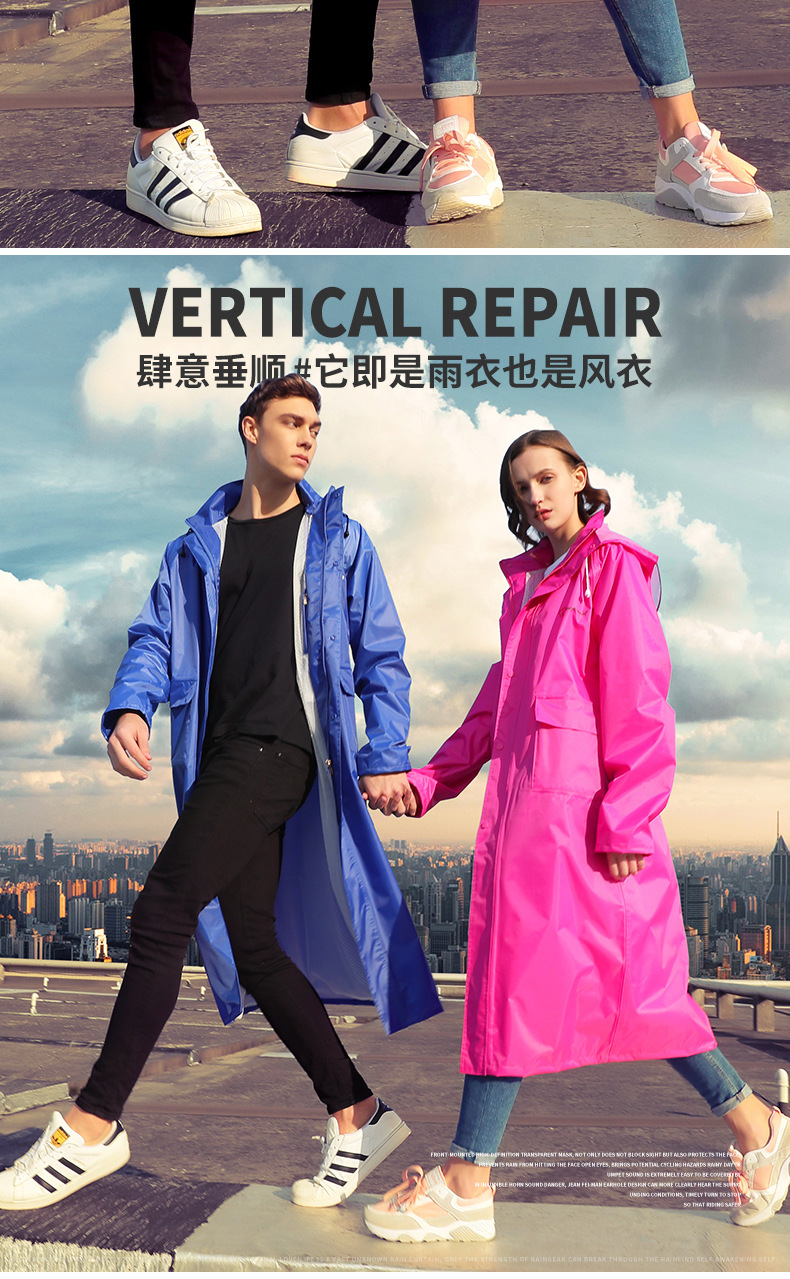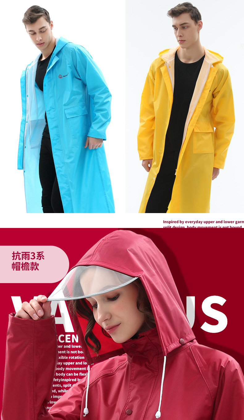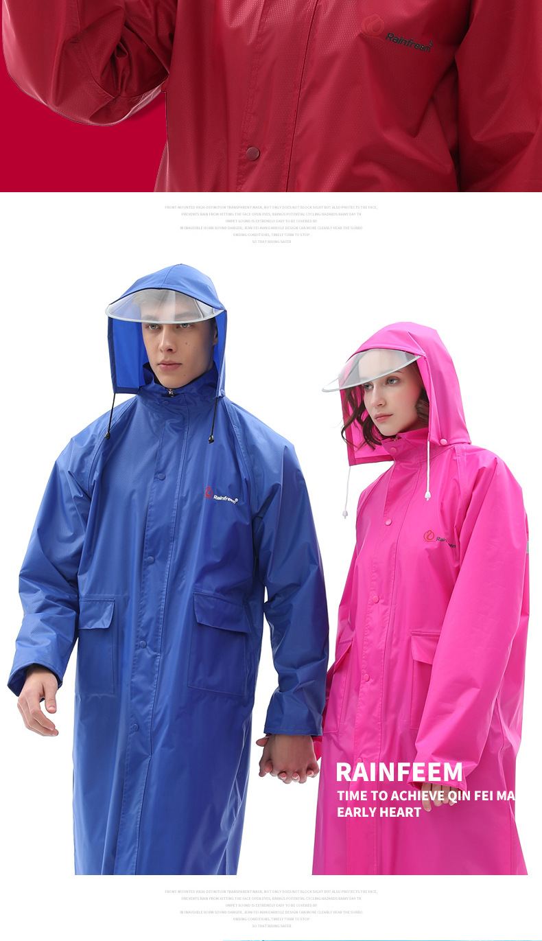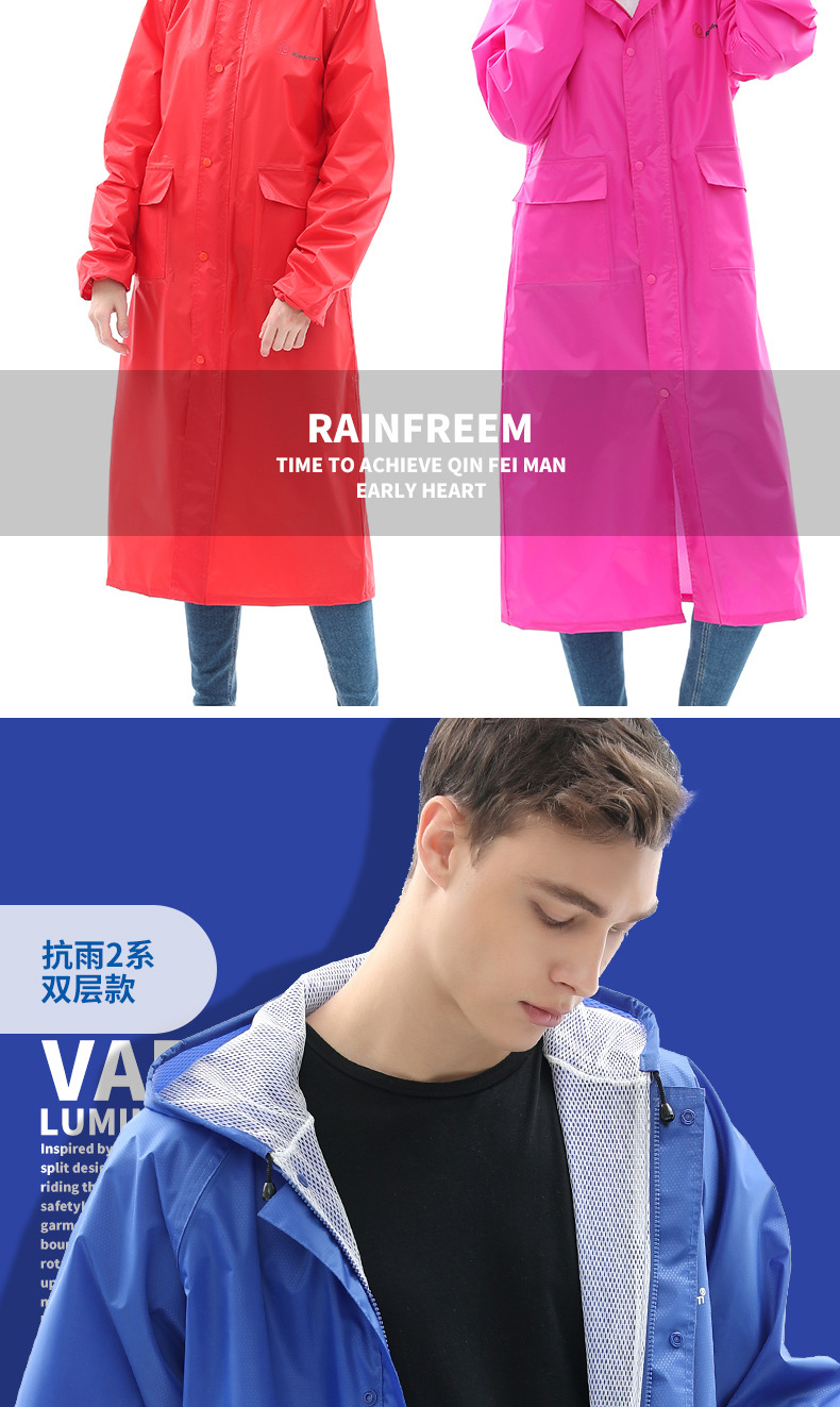 Qinfeiman 싱글 롱 레인코트 전신 코트 윈드 브레이커 판초 성인 하이킹 야외 패션 비옷