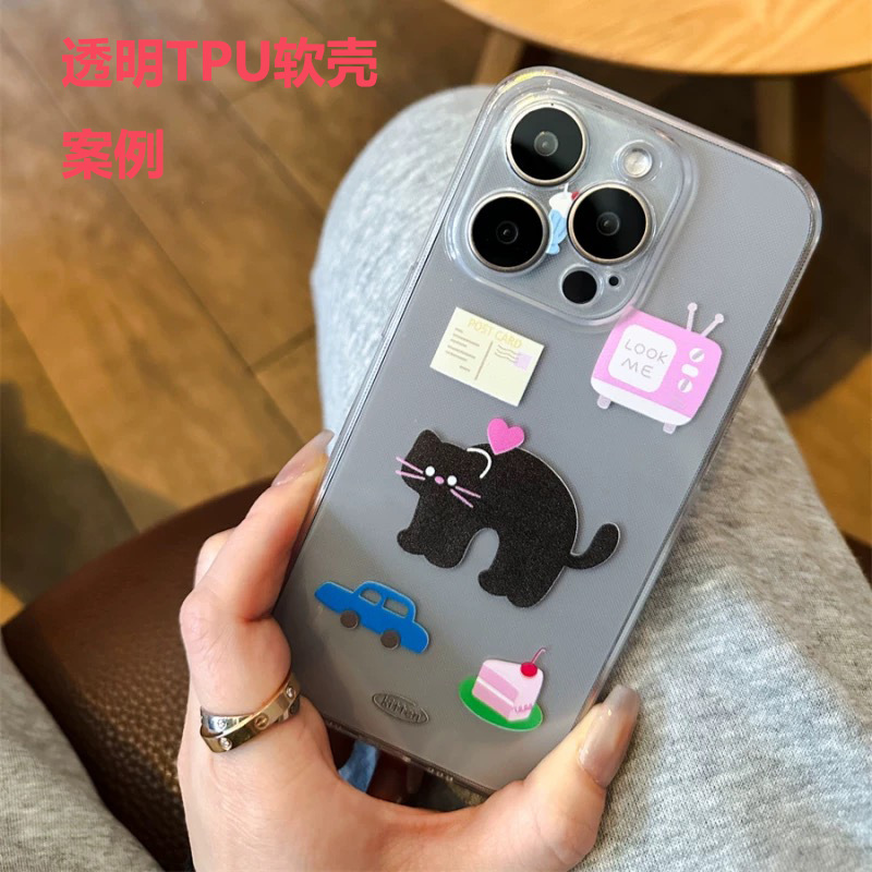 Apple 투명 소프트 쉘에 적합한 휴대폰 케이스 사용자 정의 검정색 실리콘 필름 자기 흡입 깃털 원사 유리 휴대폰 케이스 사용자 정의스토어 가기