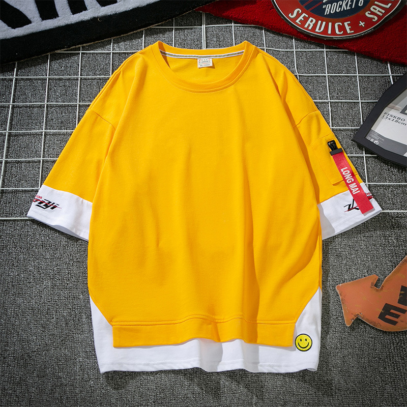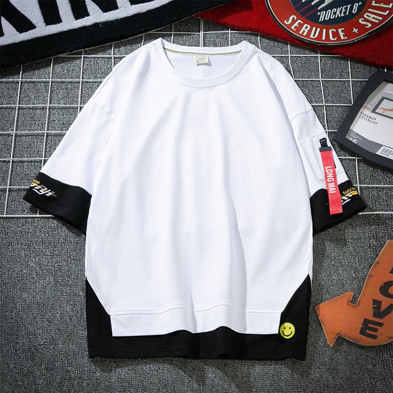 반팔 티셔츠 남성용 유행 브랜드 외국 2020 새로운 유행 한국 스타일 학생복 느슨한 순면 베이스 셔츠 남성 여름