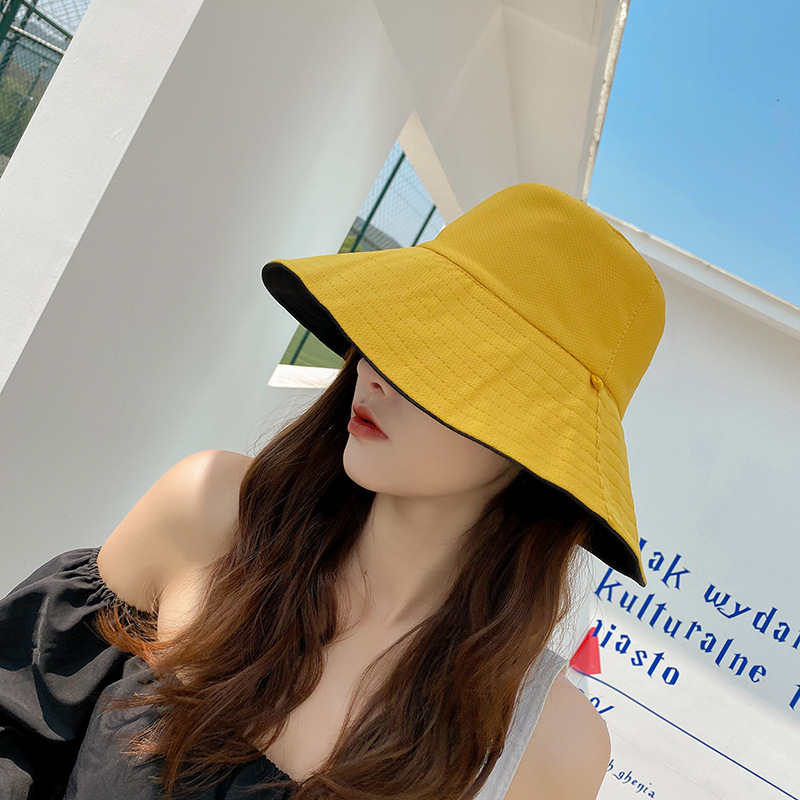 한국식 폭발성 인터넷 연예인 어부 모자 여성용 여름 캐주얼 모든 경기 양면 단색 여행 모자 자외선 차단제 모자스토어 가기