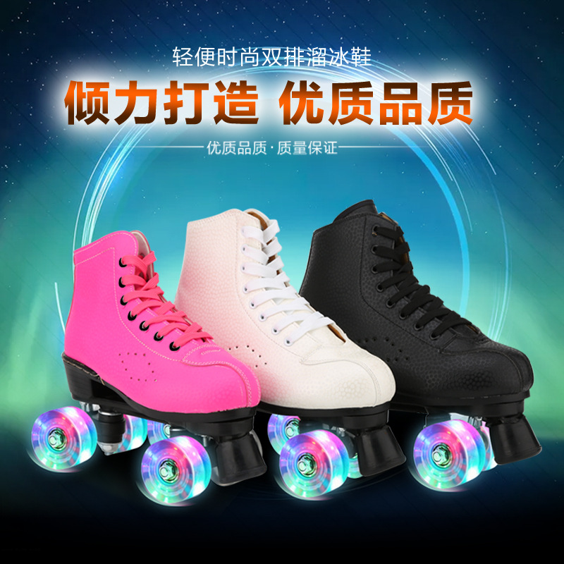 컬러 성인 더블 로우 스케이트 롤러 스케이트 성인 남성과 여성의 더블 로우 휠 어린이 더블 로우 스케이트 4 륜 플래시스토어 가기