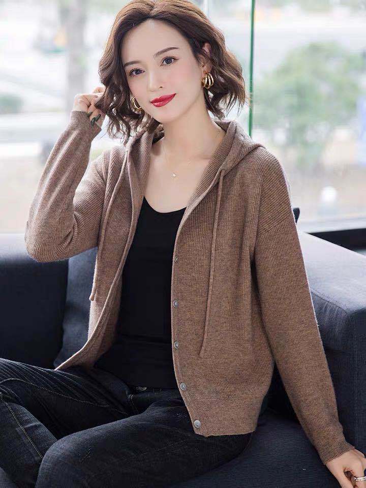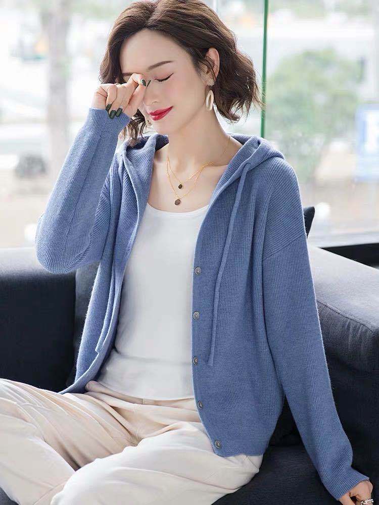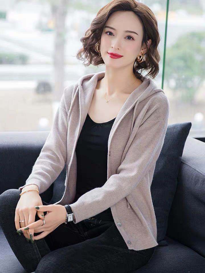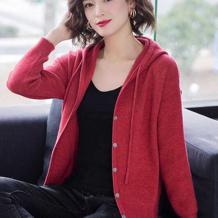 2021 봄과 가을 새로운 니트 가디건 여성용 한국식 루즈한 후드 레이스업 싱글 브레스트 재킷 가을 탑스토어 가기