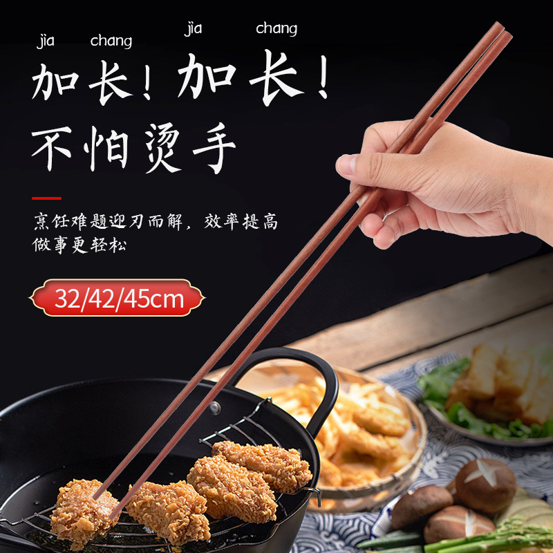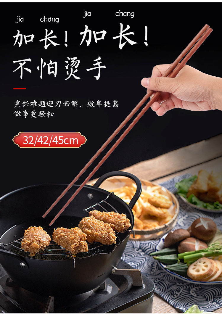 두꺼운 프라이드 프라이드 스틱이있는 공공 젓가락 가정용 나무 젓가락은 뜨거운 냄비 튀김 항균 용 국수를위한 더 긴 젓가락입니다.스토어 가기