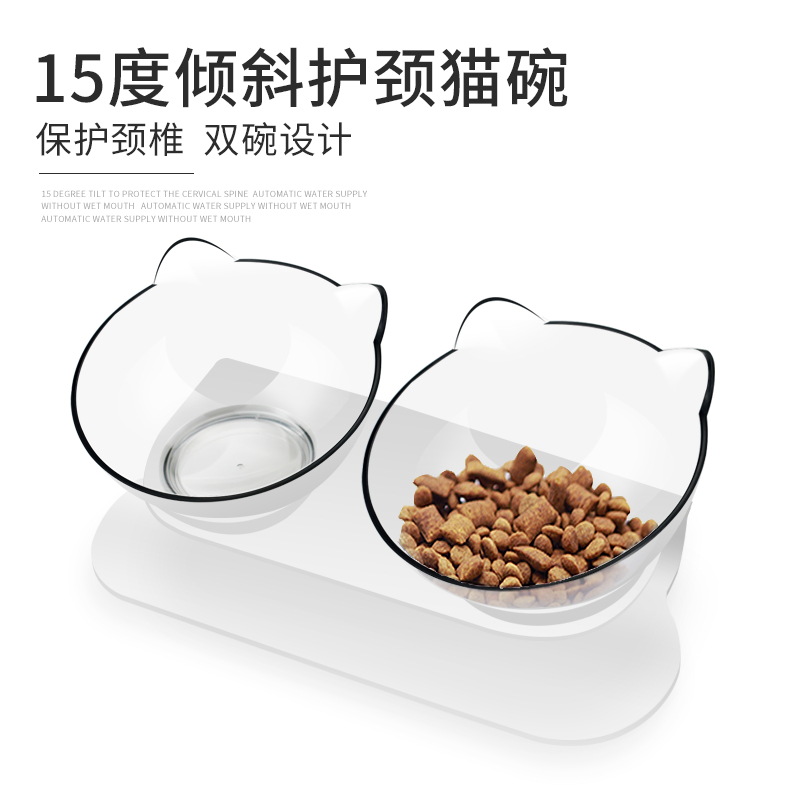 아마존 크로스 보더 고양이 그릇 15 도 기울기 고양이 얼굴 고양이 음식 그릇 먹고 마시는 이중 사용 개 그릇 경추 보호 애완 동물 그릇