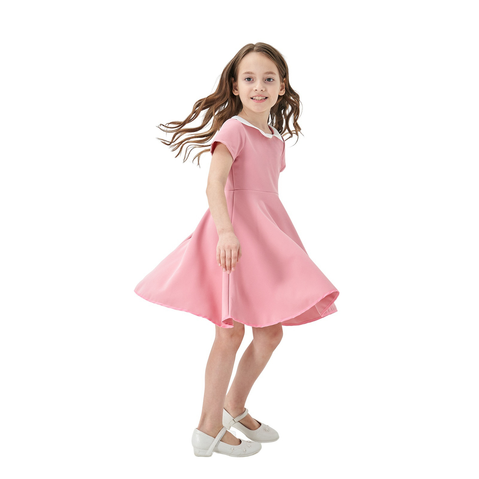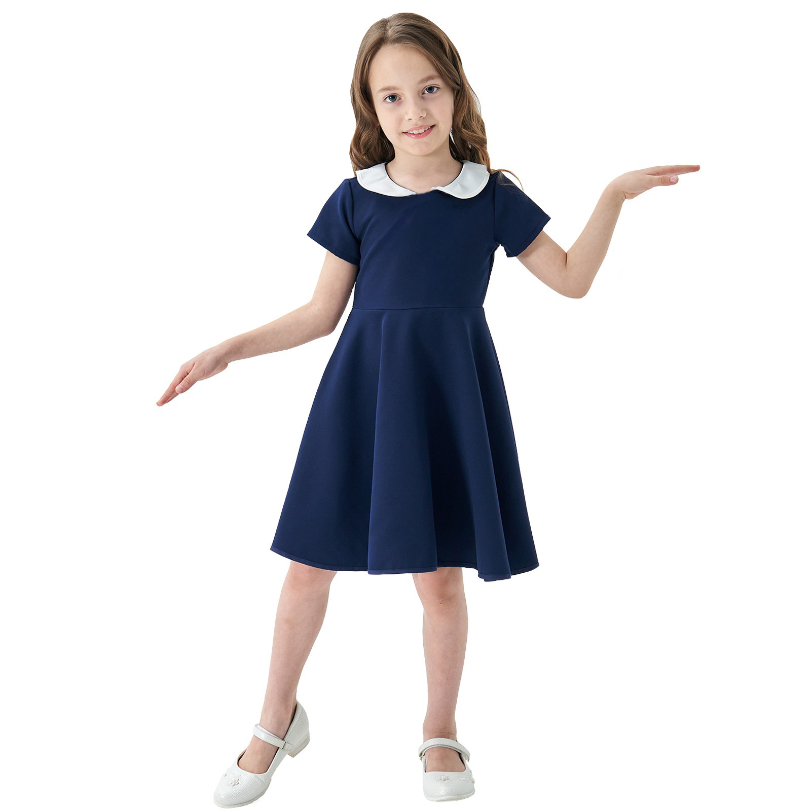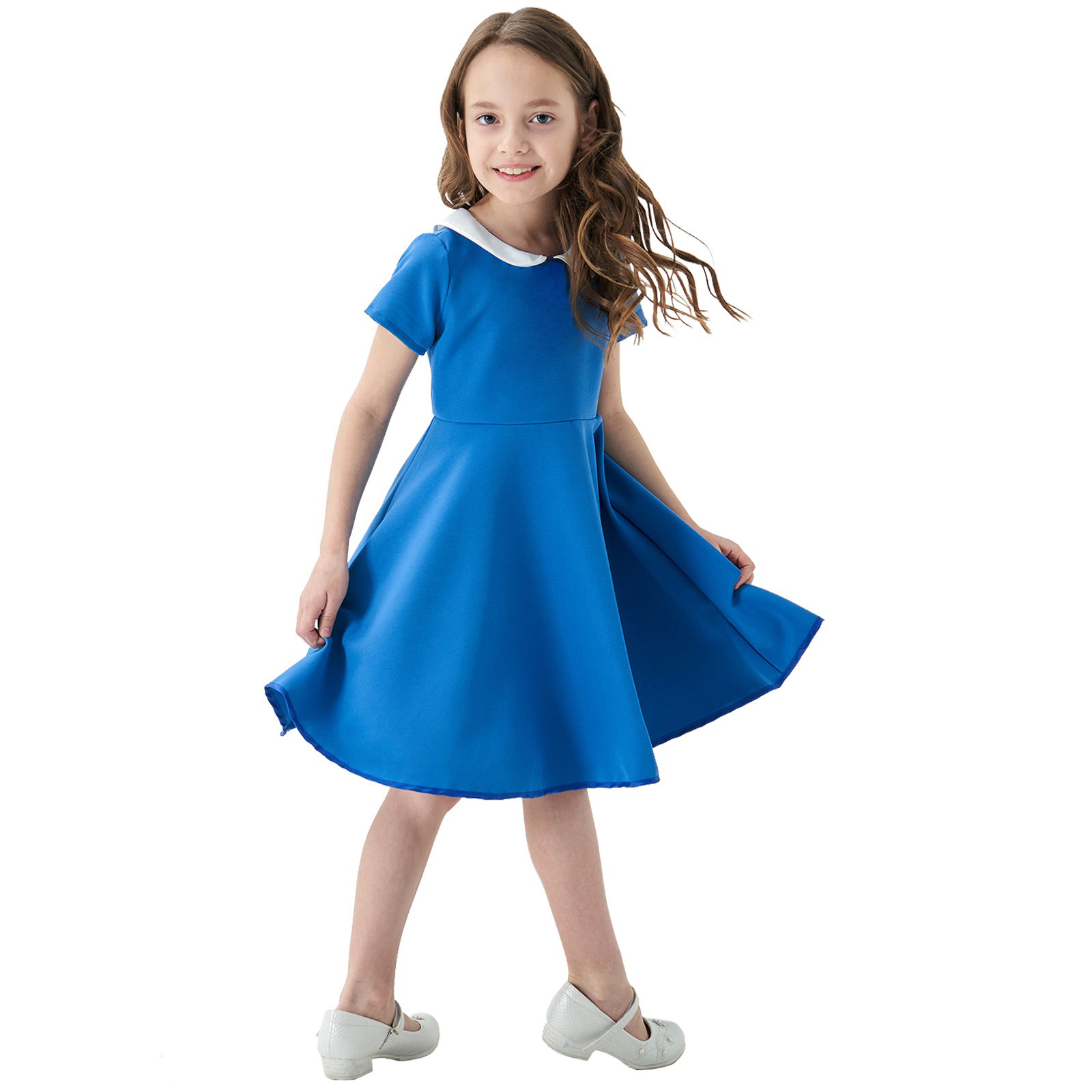 대외 무역 인기 클래식 봄 여름 신작 여아 드레스 대학 스타일 아동 봄, 가을 대비 색상 반팔 스커트스토어 가기