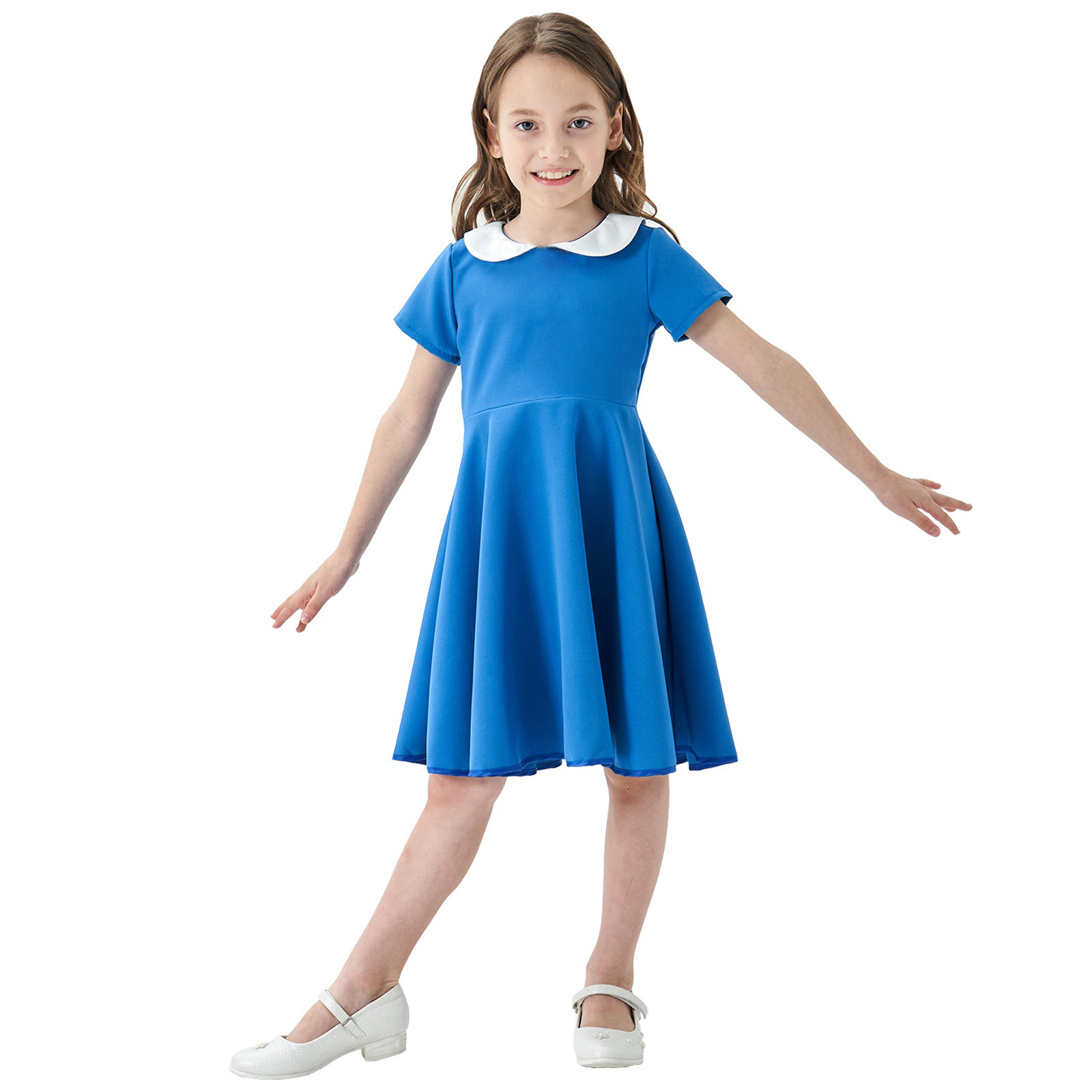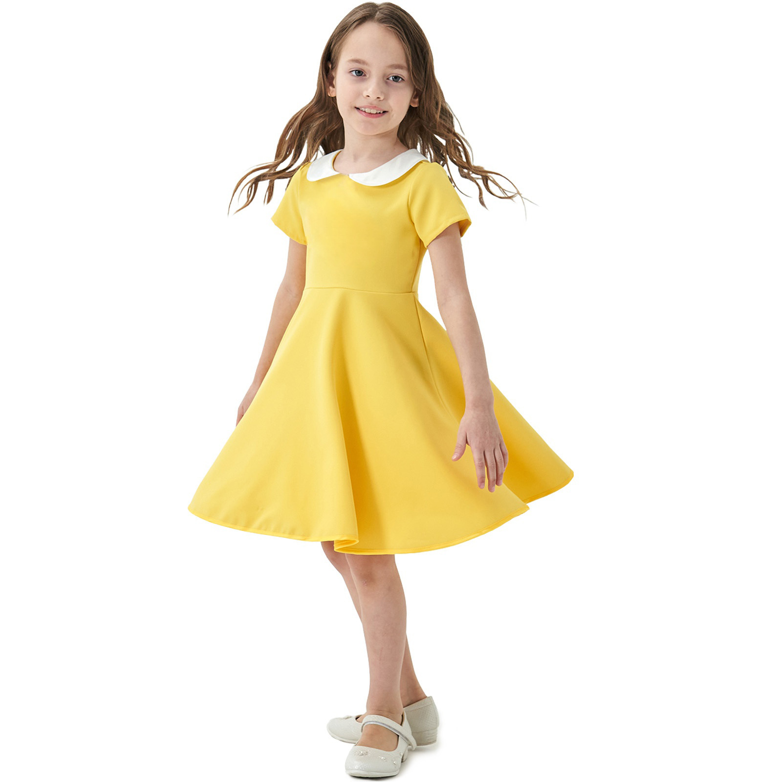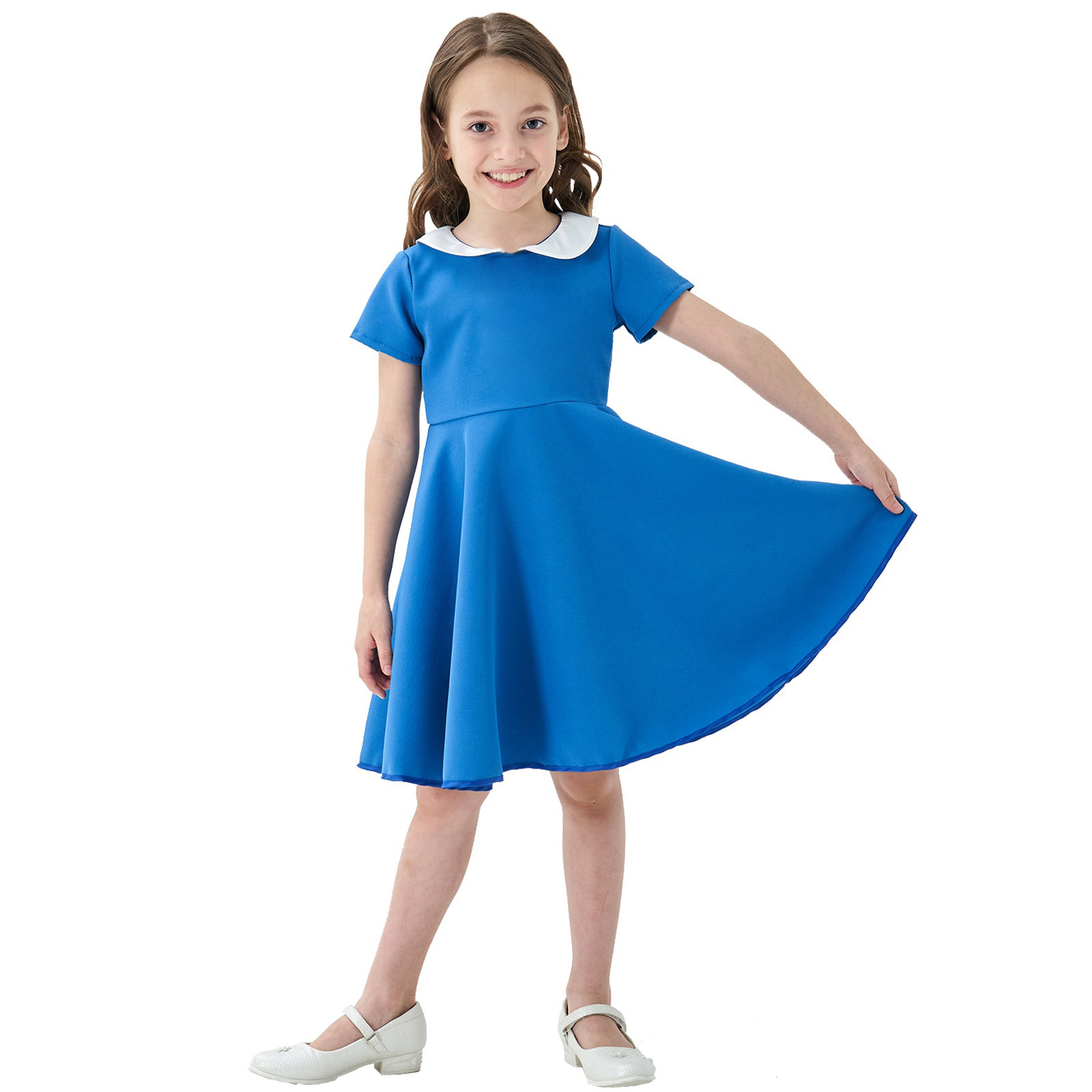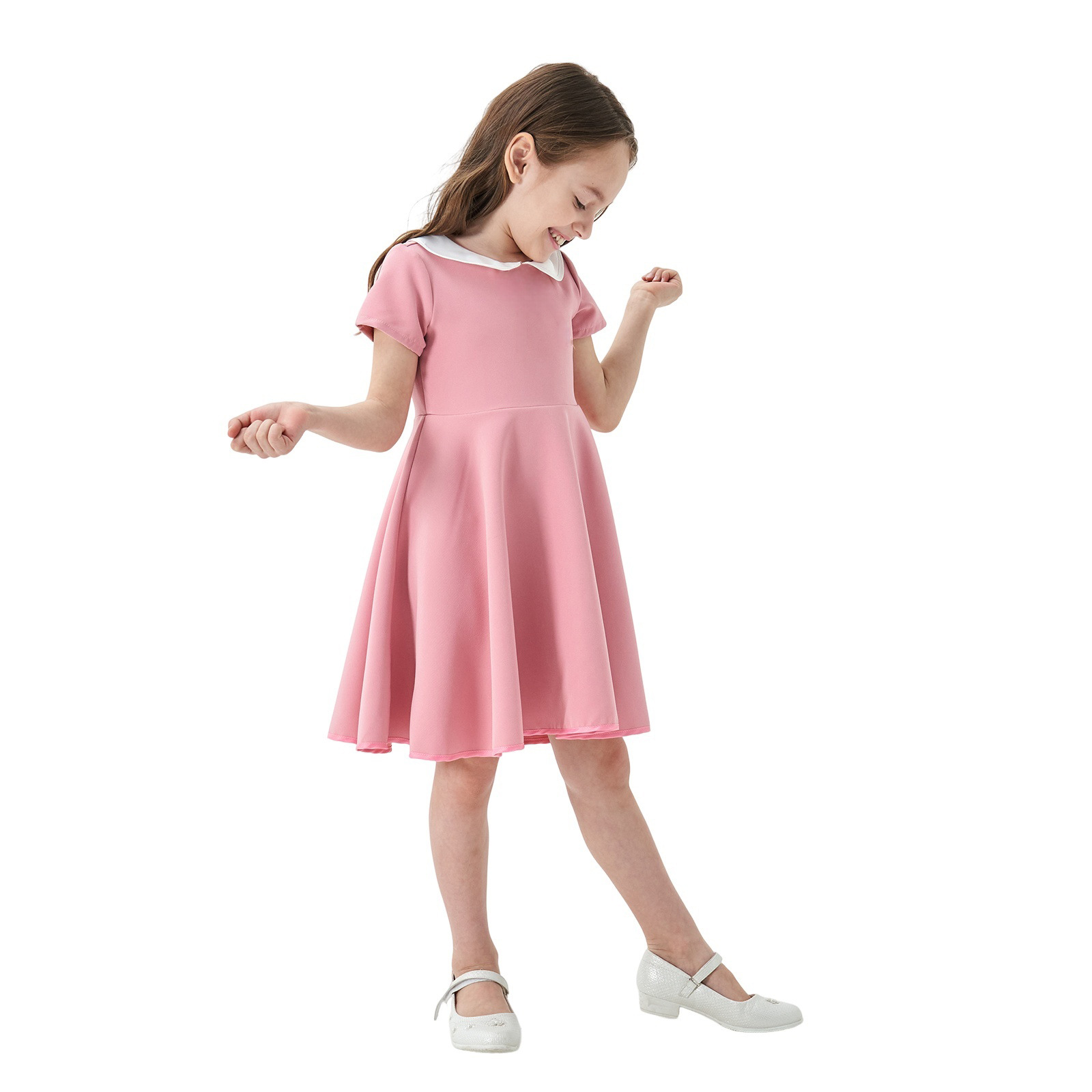 대외 무역 인기 클래식 봄 여름 신작 여아 드레스 대학 스타일 아동 봄, 가을 대비 색상 반팔 스커트스토어 가기