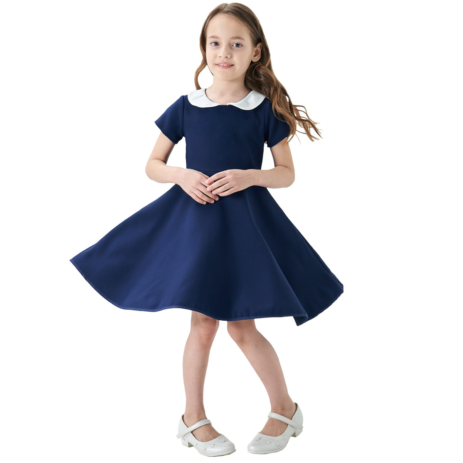 대외 무역 인기 클래식 봄 여름 신작 여아 드레스 대학 스타일 아동 봄, 가을 대비 색상 반팔 스커트