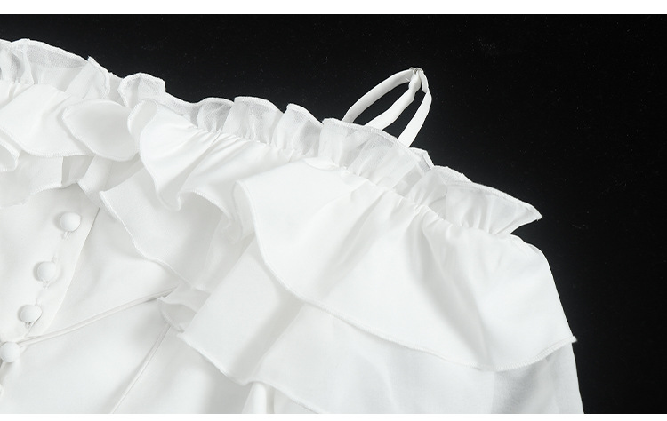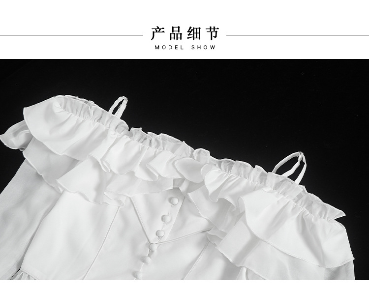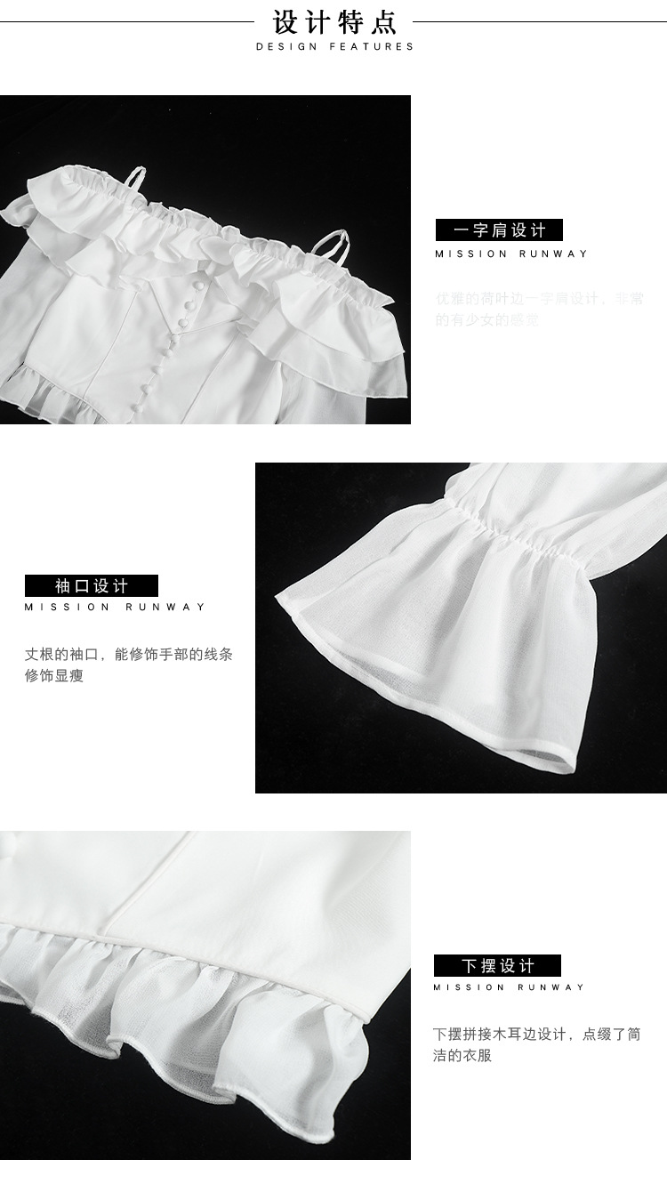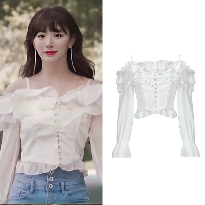Kong Xueer 젊음에는 당신의 최고 요정이 있습니다 슈퍼 요정 달콤한 프릴 어깨 쉬폰 셔츠 여성 여름 새로운스토어 가기