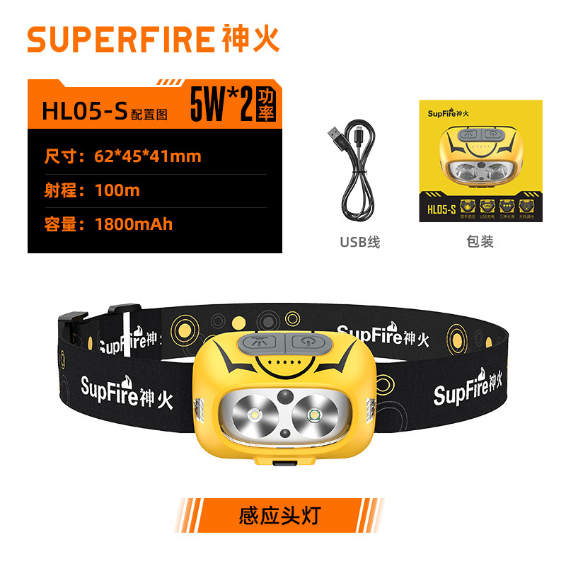 • HL05-S 유도 전조등 (5w) 백색등 + 황색등 + 적색등 플래시 (더블 클릭)