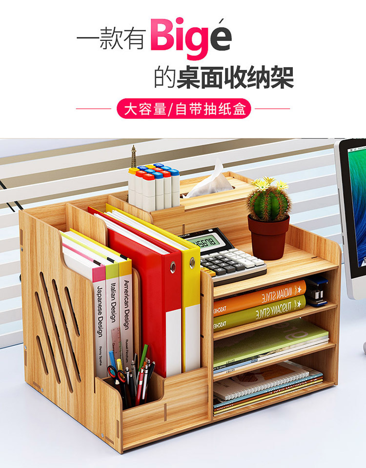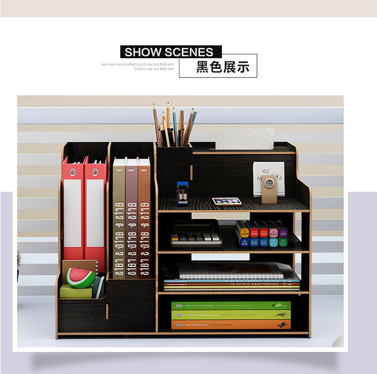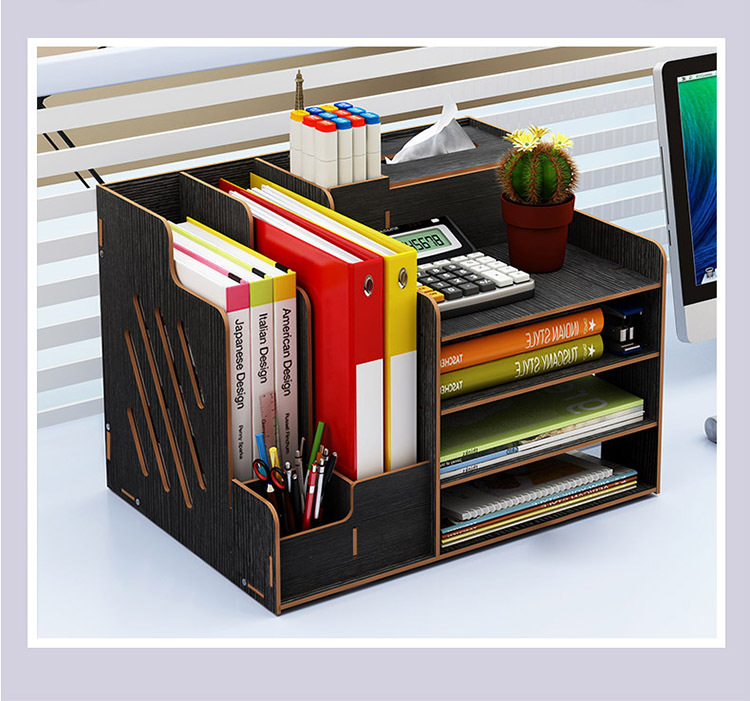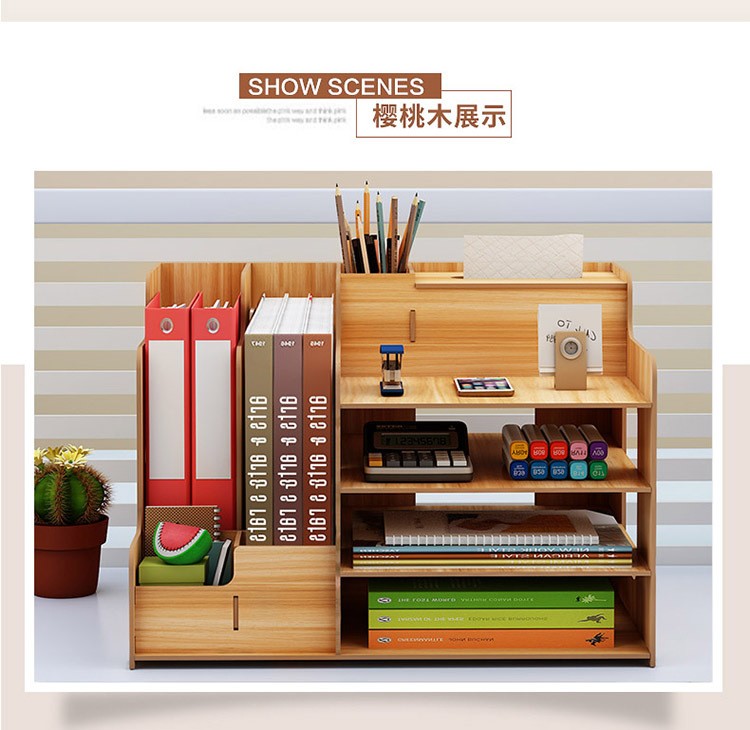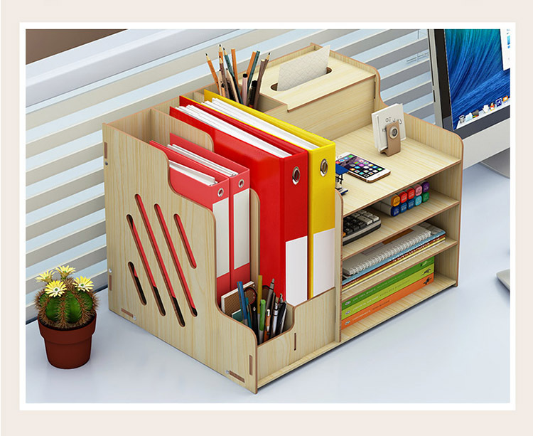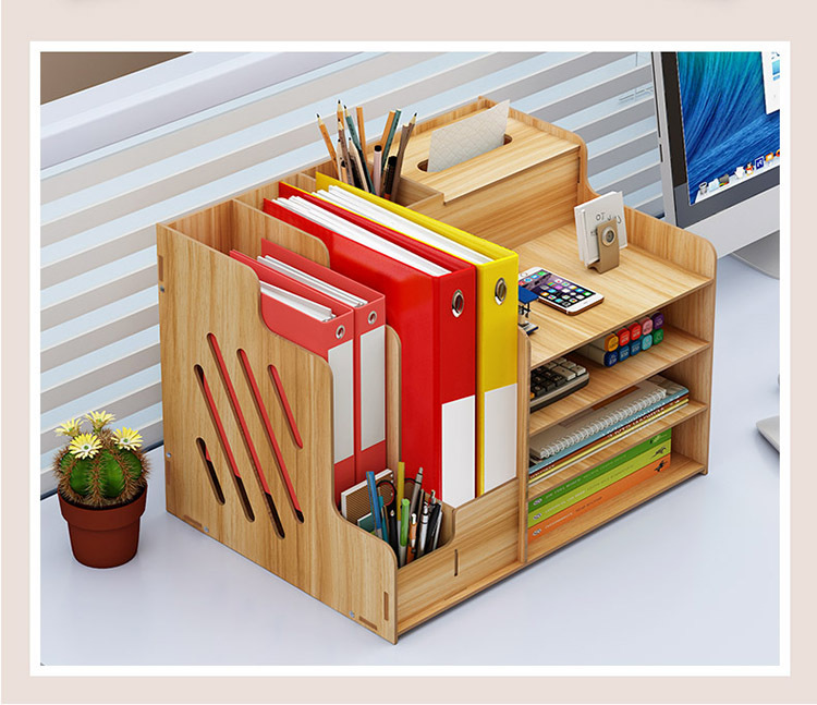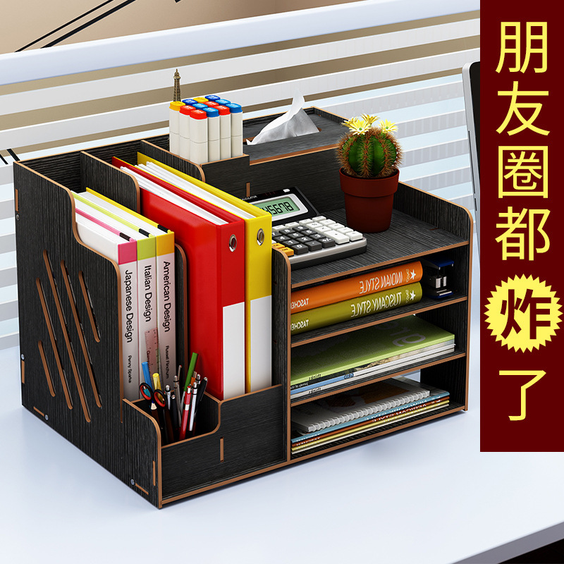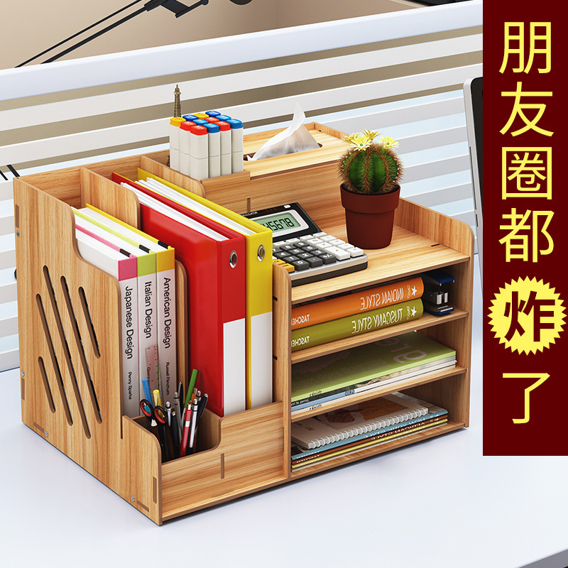 2025년 크로스보더 창의적인 나무 데스크탑 수납함 사무용품 파일 정리함 책 수납 선반스토어 가기