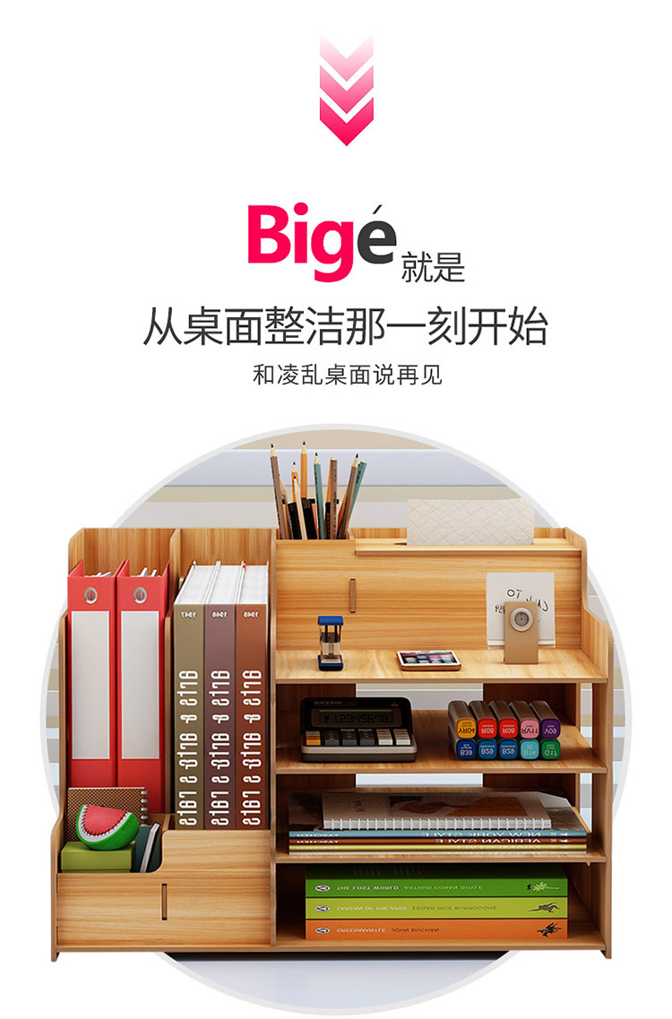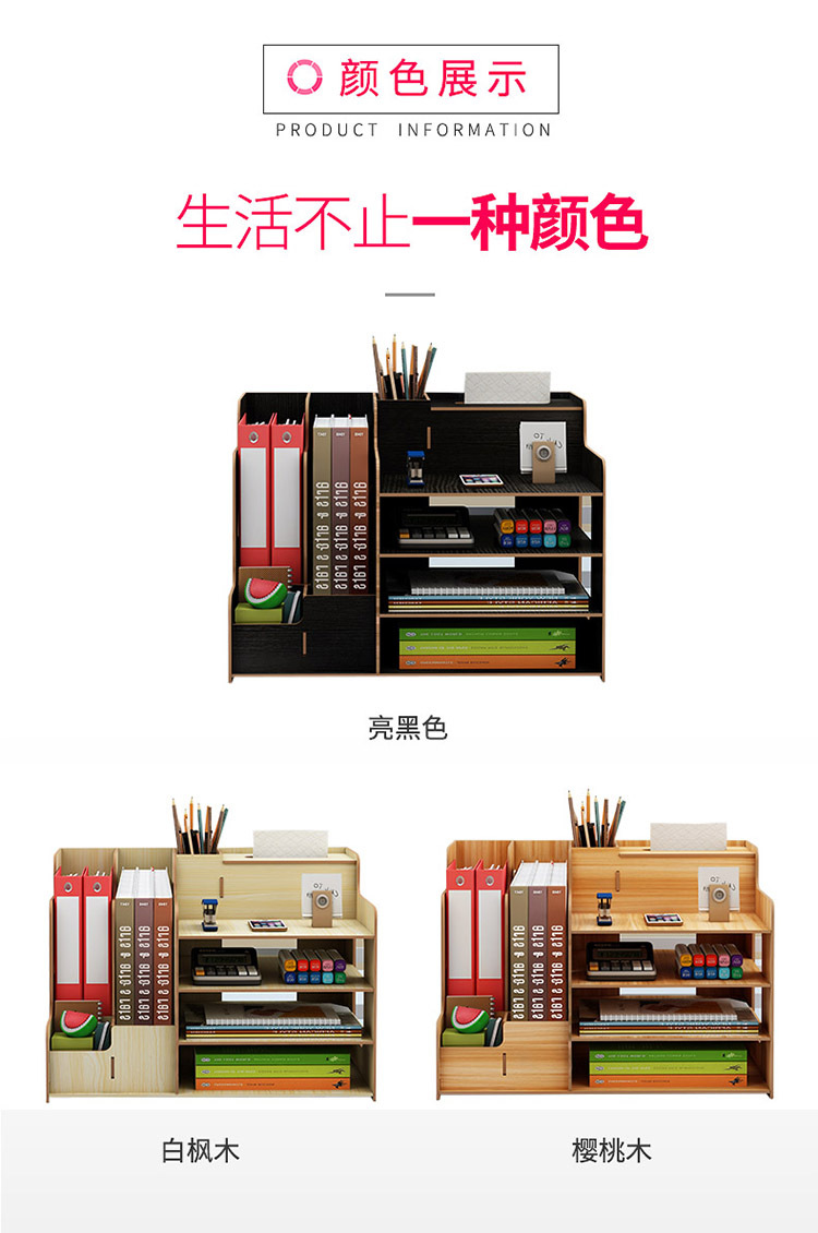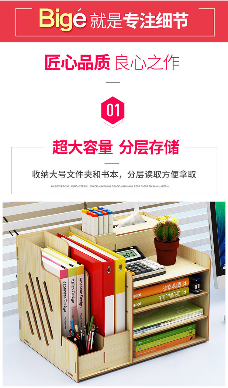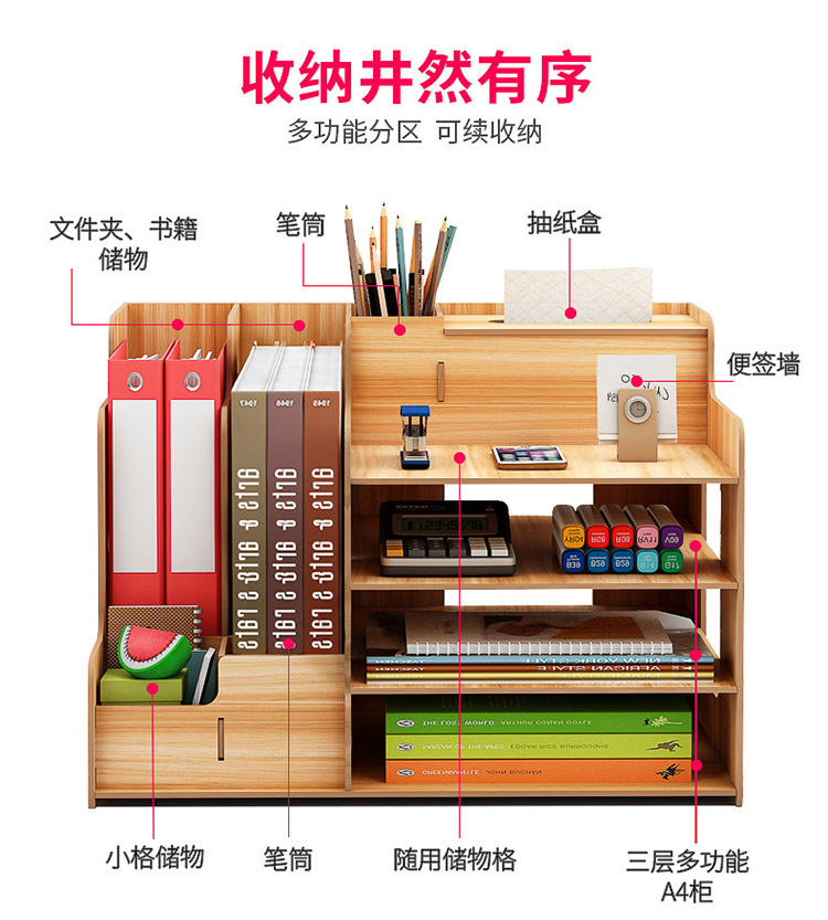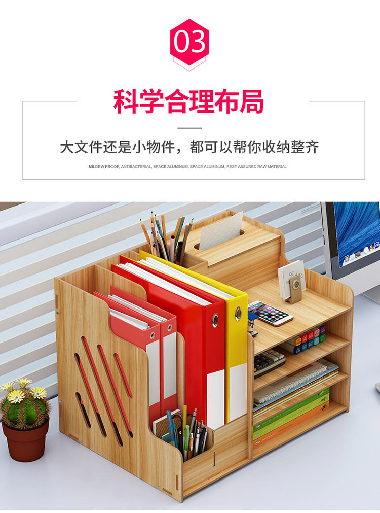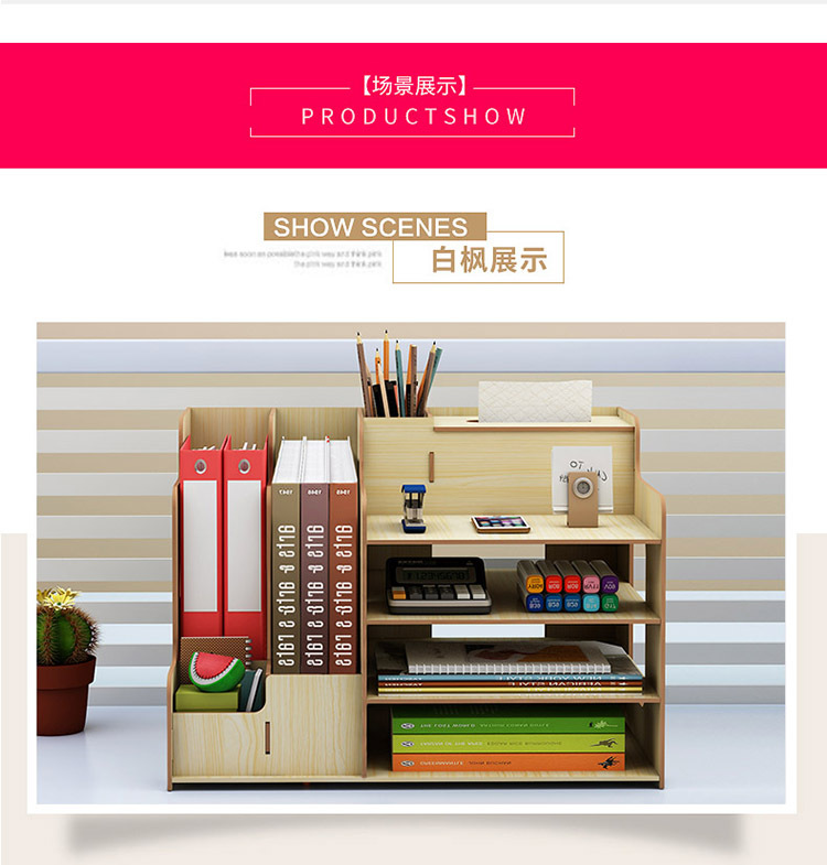 2025년 크로스보더 창의적인 나무 데스크탑 수납함 사무용품 파일 정리함 책 수납 선반스토어 가기
