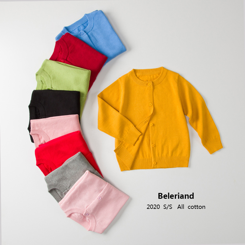 2020 봄과 가을 아동복 스웨터 아동 니트 가디건 면 한국 라운드 넥 베이스 셔츠 교복 처리 맞춤