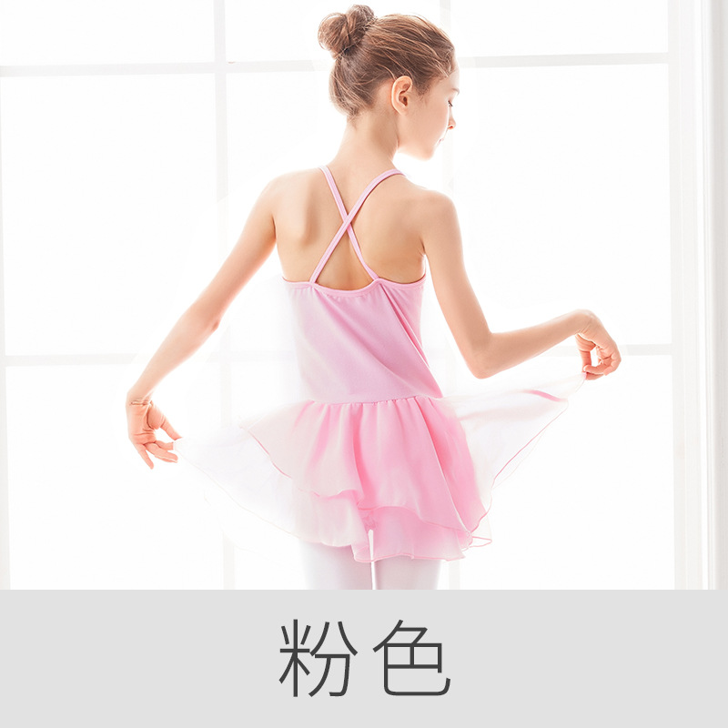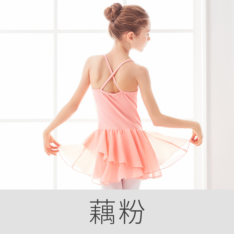 어린이 댄스 의상 연습 원피스 소녀의 댄스 퍼포먼스 원피스 소녀의 발레 원피스 슬링 쉬폰 원피스 퍼포먼스 원피스