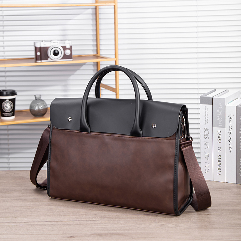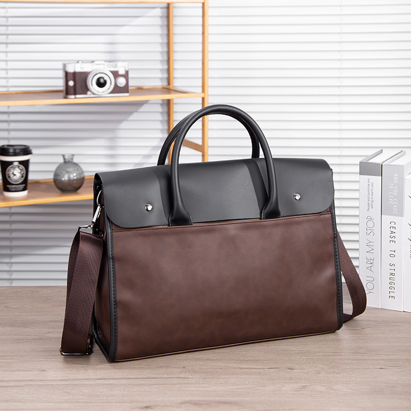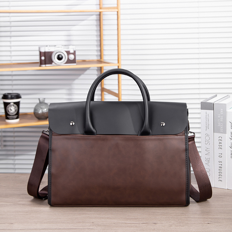 미친 말 가죽 남성용 가방 레트로 서류 가방 대비 색상 비즈니스 남성용 핸드백 수평 싱글 숄더 크로스 바디 컴퓨터 가방스토어 가기