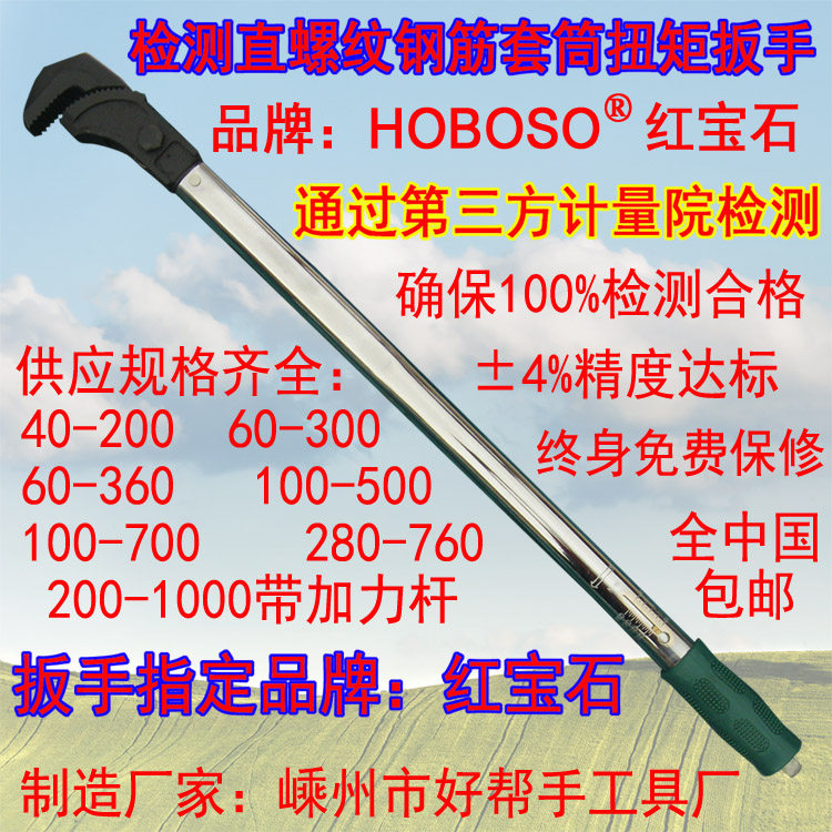 检测直螺纹钢筋套筒 力矩扳手 扭力 扭距扳手 扭距值扭力 可开票 浙江省嵊州市好帮手工具厂 生产,扳手,可以享受终身保修。