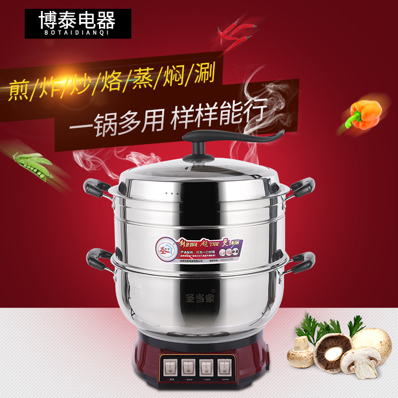 다기능 전기 밥솥 가정용 전기 프라이팬 두꺼운 다목적 팬 스테인레스 스틸 전기 증기선 04 식품 등급 스테인레스 스틸