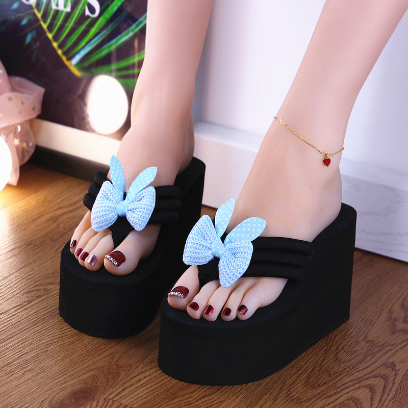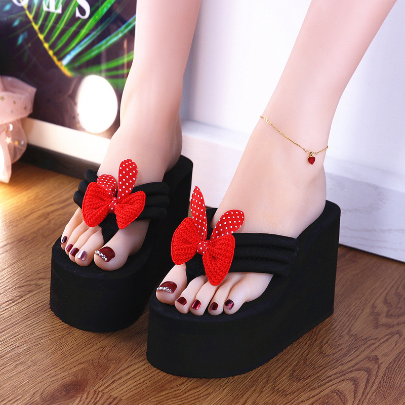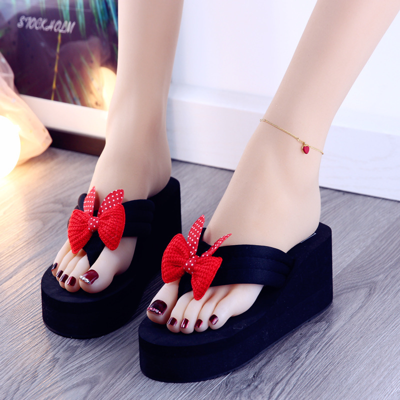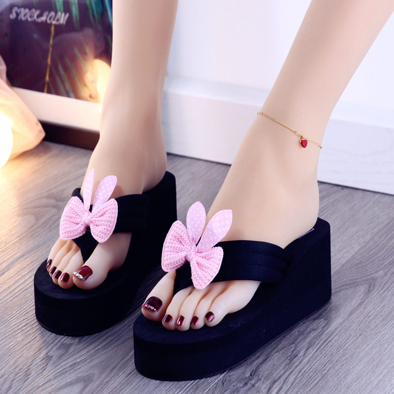 새로운 슬리퍼 여성용 여름 패션 편안한 2020 활 겉옷 한국식 슬리퍼 하이힐 두꺼운 바닥 플립 플롭