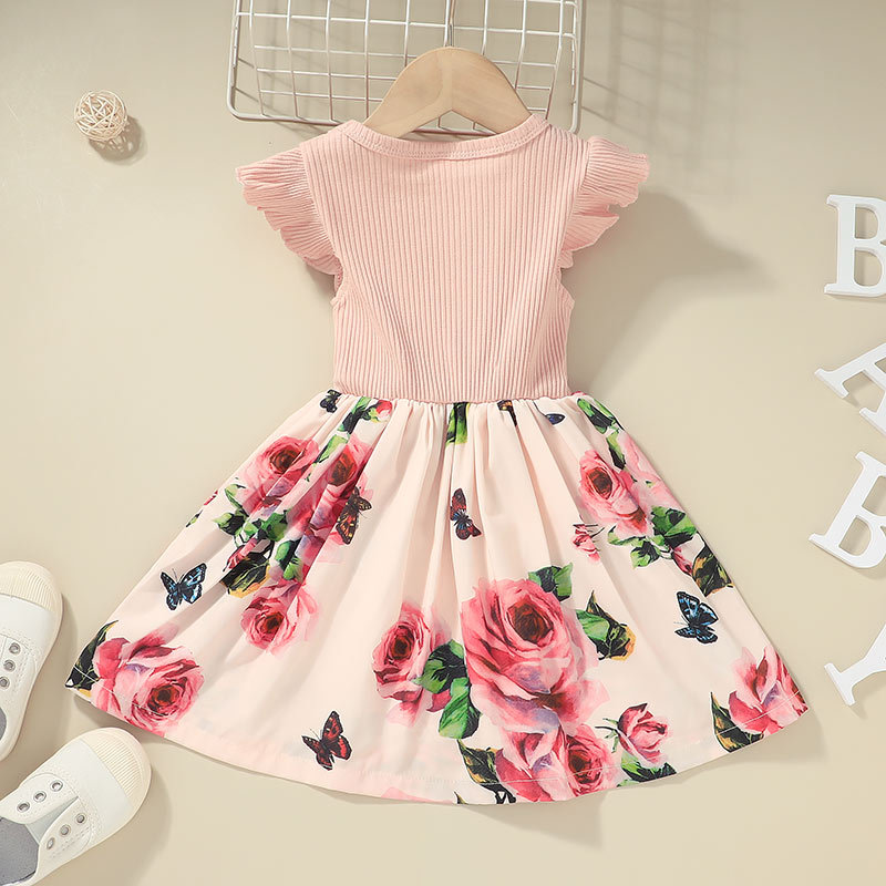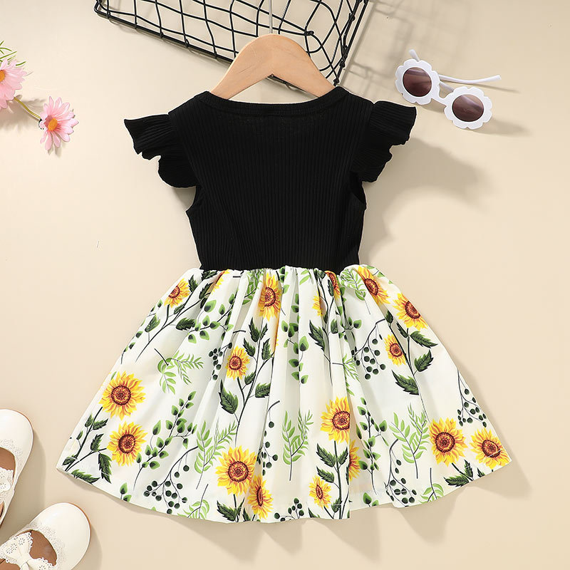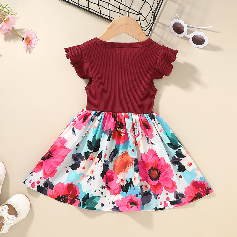1-10 세 소녀 여름 코튼 피트 스트립 스플 라이스 프린트 드레스 통기성 피부 친화적 인 한국 스타일 서양식 어린이 스커트 새로운
