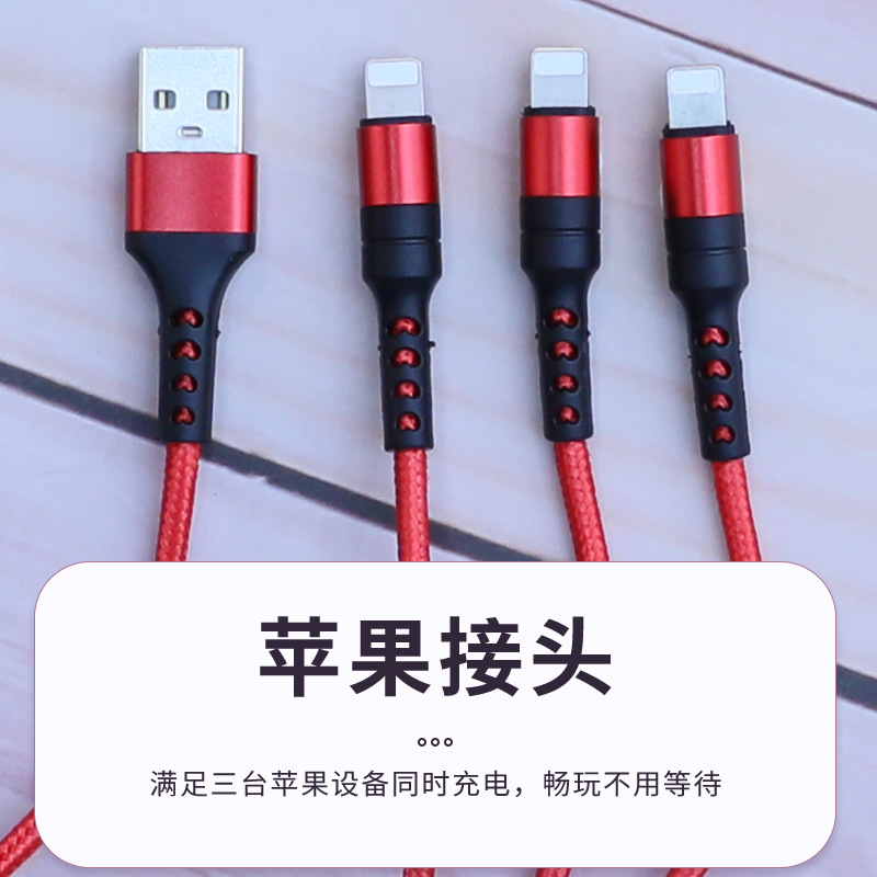 适用苹果Type-C安卓100W超级快充三合一数据线手机充电线6A一拖三                           ¥1.3