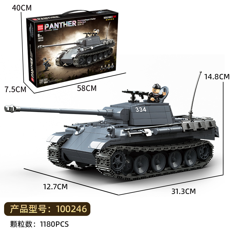 | 德国豹式中型坦克G后期型 | 100246 | 1180 | 58*40*7.5 | 95.5*41.5*60 | 12 |