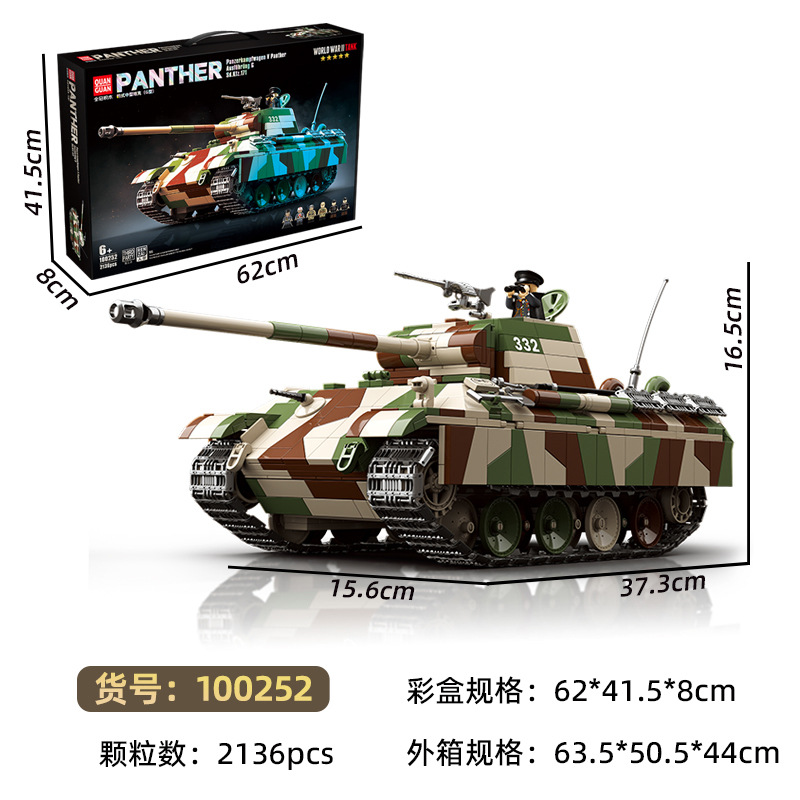 | 德国豹式中型坦克G型积木 | 100252 | 2136 | 62.5*41.5*8 | 63.5*50.5*44 | 6 |