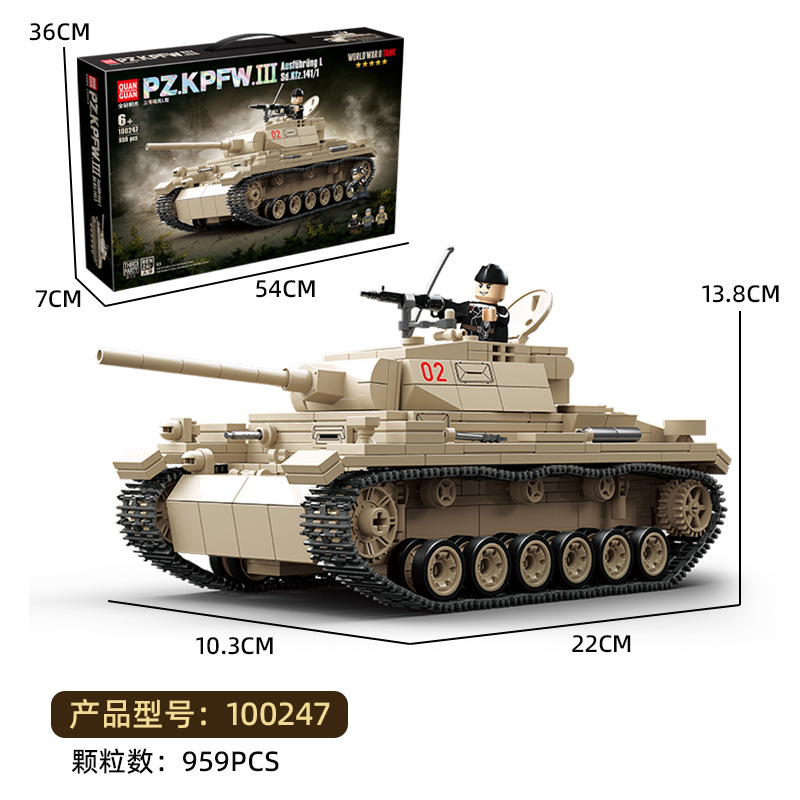 | 德国三号坦克L型 | 100247 | 959 | 54*36*7 | 68*55.5*75 | 18 |