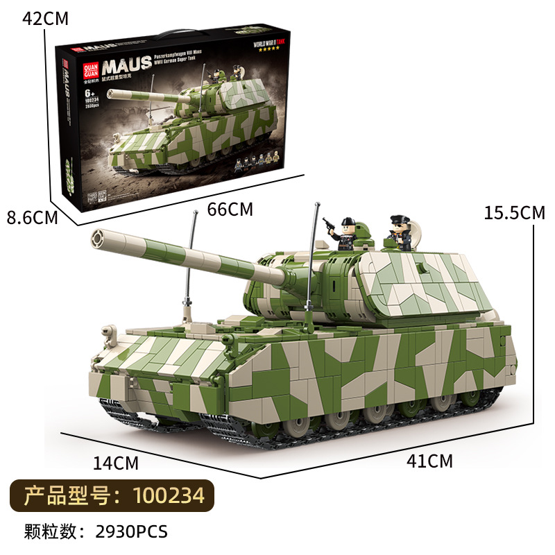 | 德国鼠式重型坦克 | 100234 | 2930 | 66*42*8.6 | 86*28*68 | 6 |