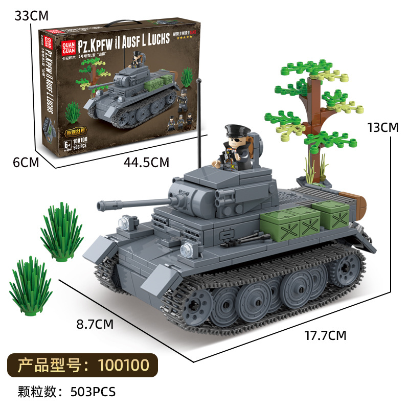 | 德国2号L型坦克山猫 | 100100 | 503 | 44.5*33*6 | 76.5*48*73 | 24 |