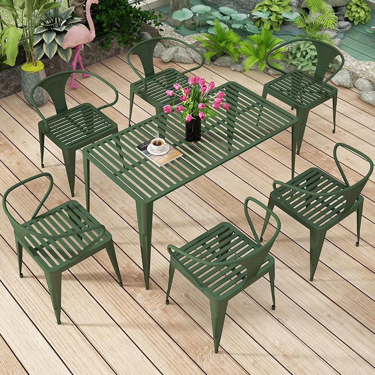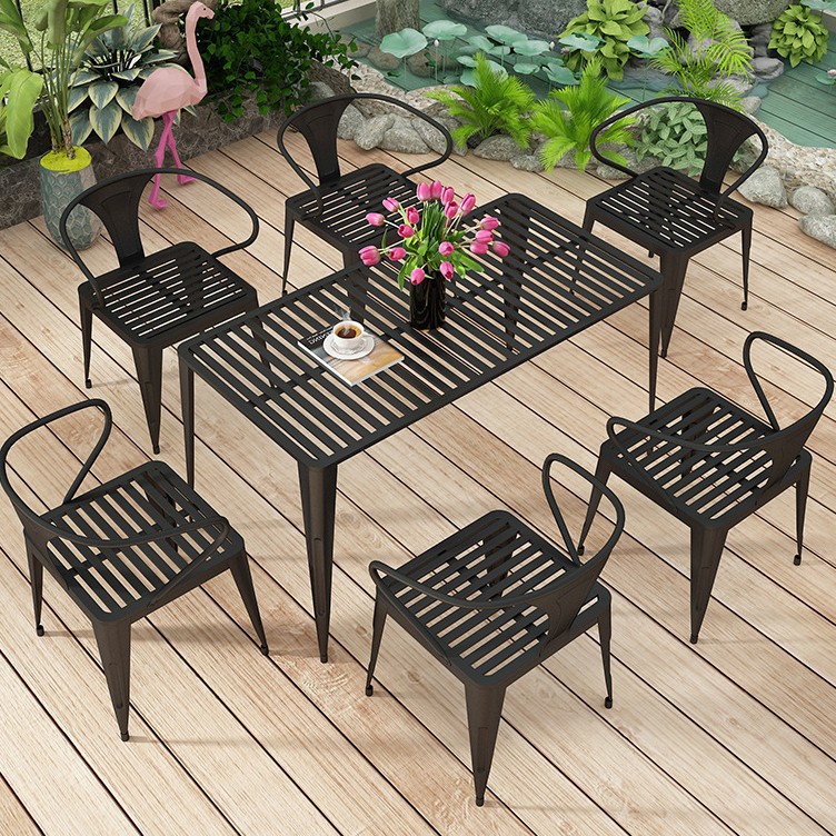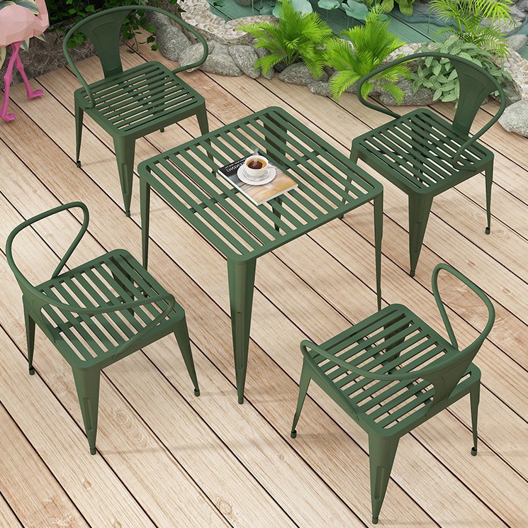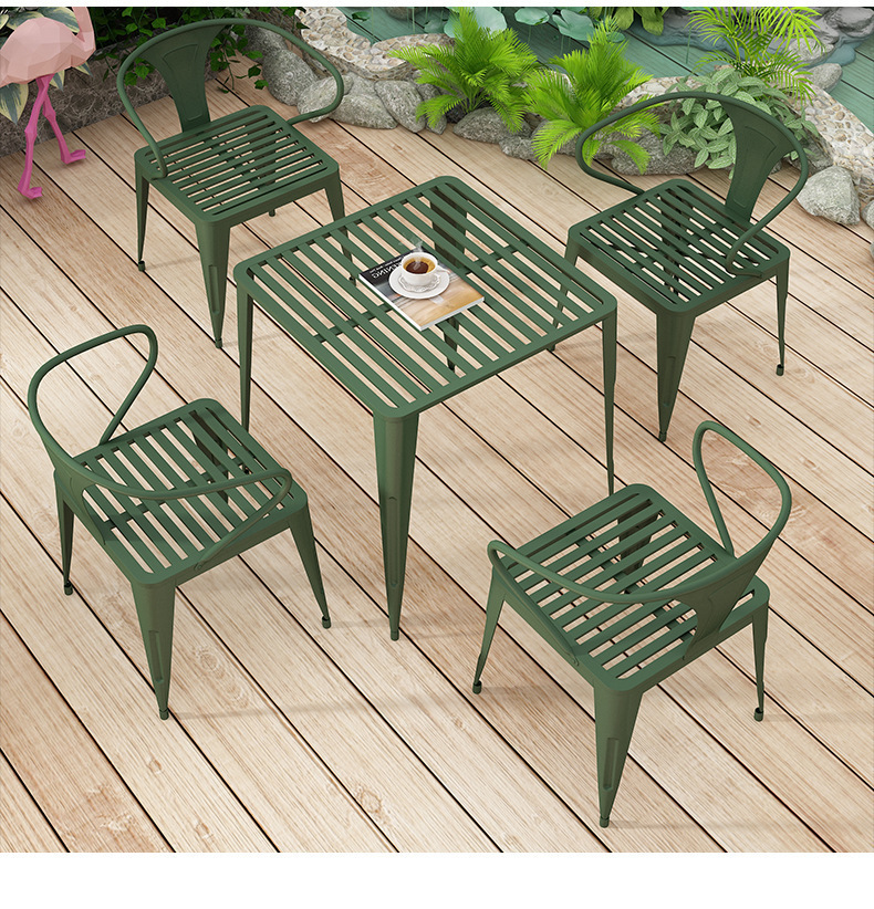 간단한 단철 야외 식탁 및 의자 조합 레저 야외 안뜰 발코니 테이블과 의자 야외 테라스 가든