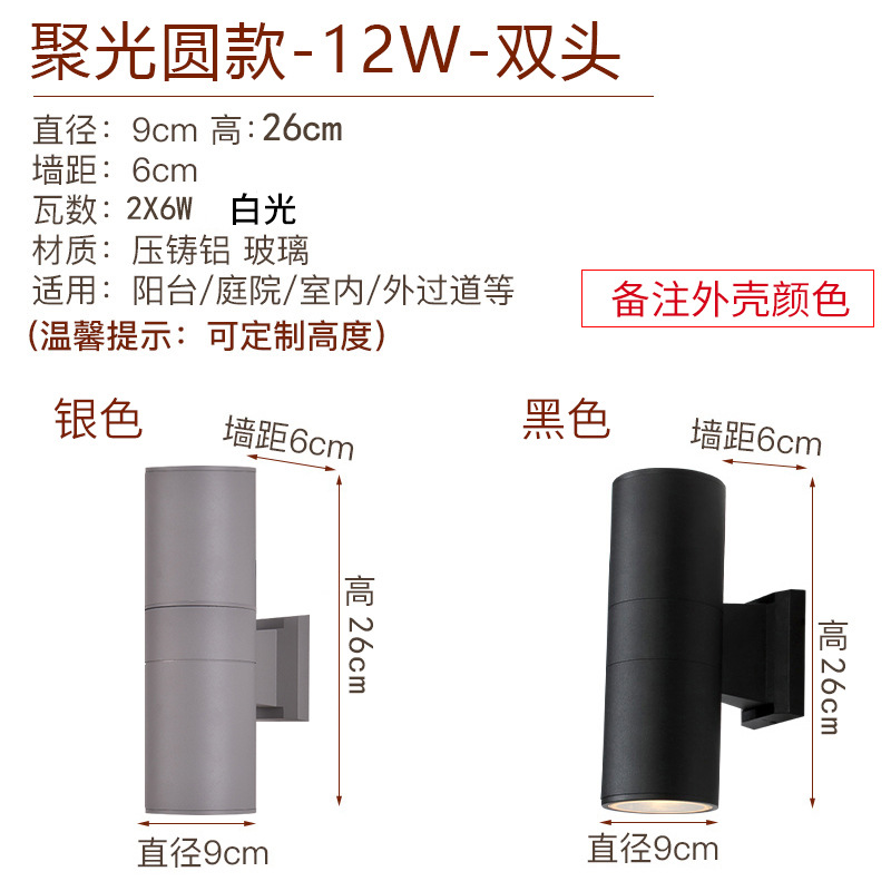 야외 방수 양두 벽 램프 호텔 빌라 외벽 복도 램프 게이트 기둥 라운드 위아래 발광 램프