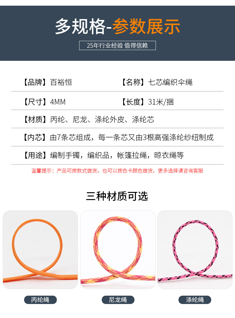 캠핑 나일론 바인딩 로프 우산 로프 꼰 로프 수제 DIY 로프 7 코어 폴리 프로필렌 로프 모자 로프스토어 가기