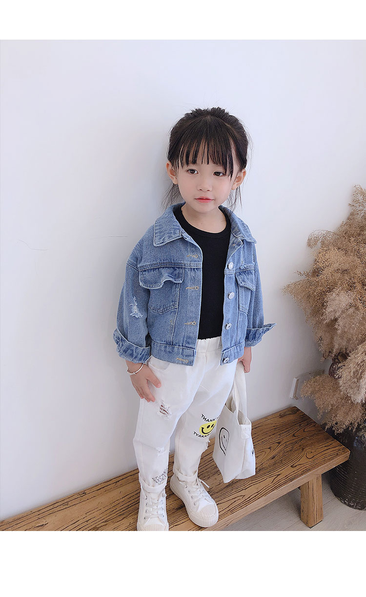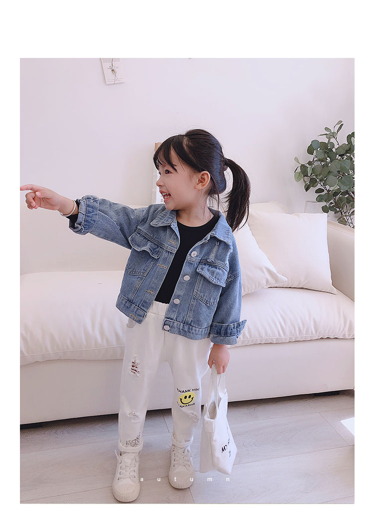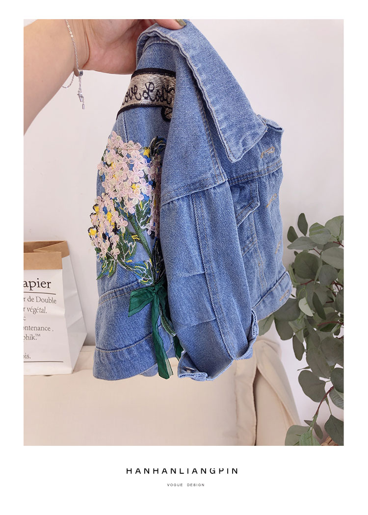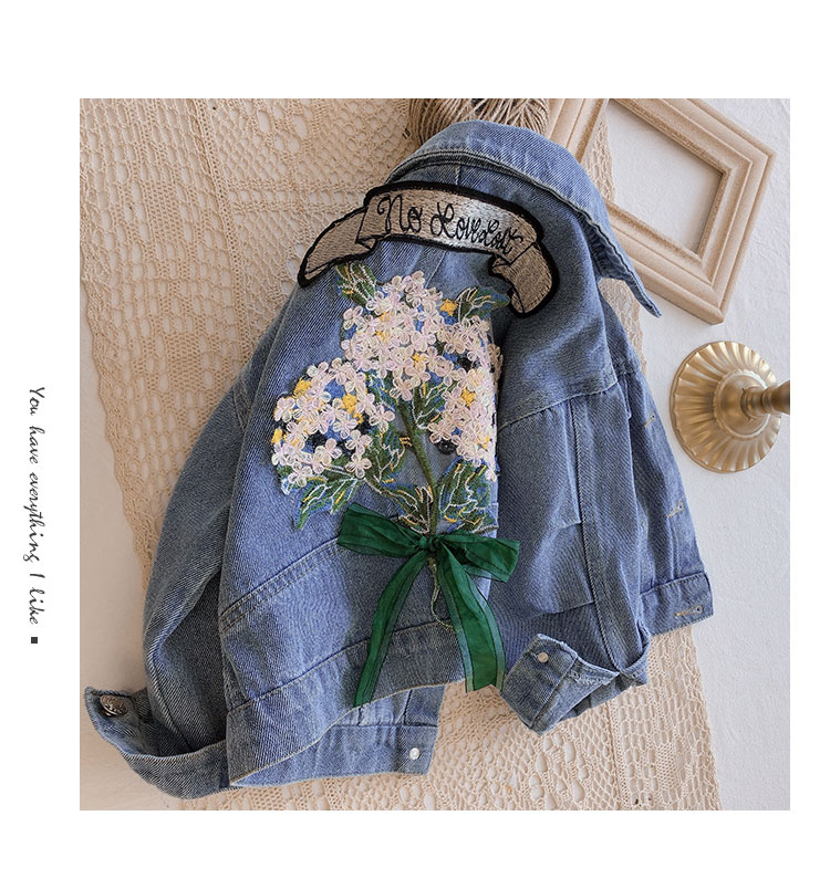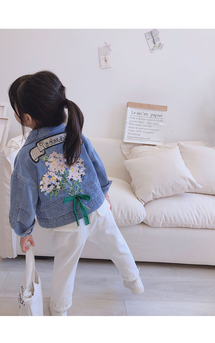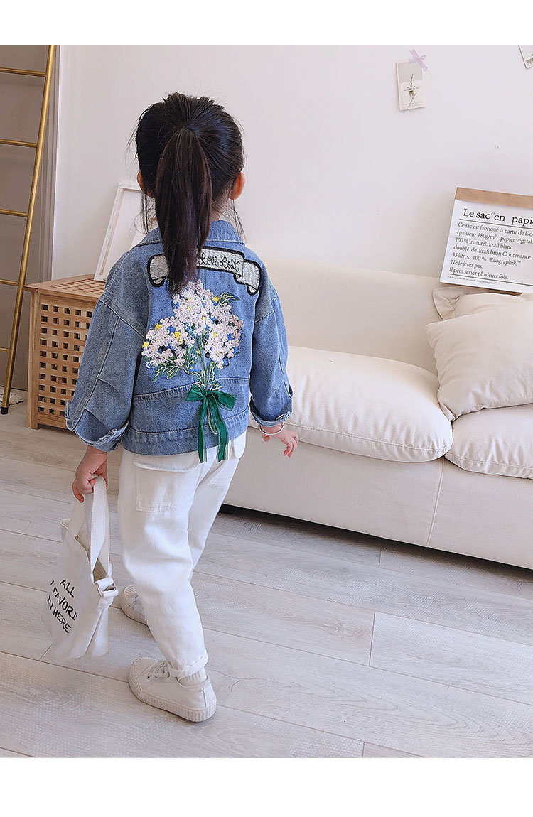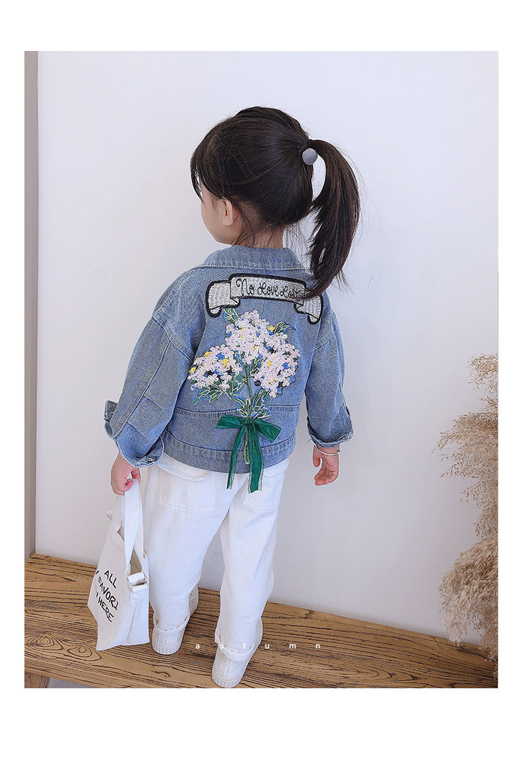 2025 봄, 가을 새로운 스타일 소녀의 귀엽고 편안한 복고풍 꽃 데님 재킷 어린이 맞춤형 서양식 재킷스토어 가기