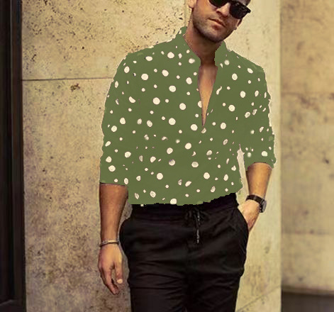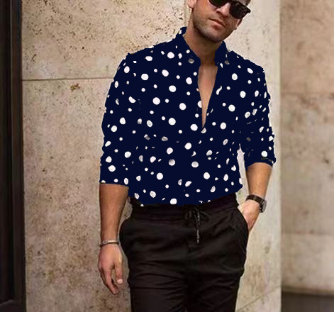 2025년 신상 남성용 물방울 무늬 프린트 캐주얼 만능 긴팔 셔츠 공장 직판 재고 있음 트렌디스토어 가기