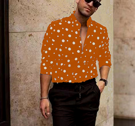 2025년 신상 남성용 물방울 무늬 프린트 캐주얼 만능 긴팔 셔츠 공장 직판 재고 있음 트렌디
