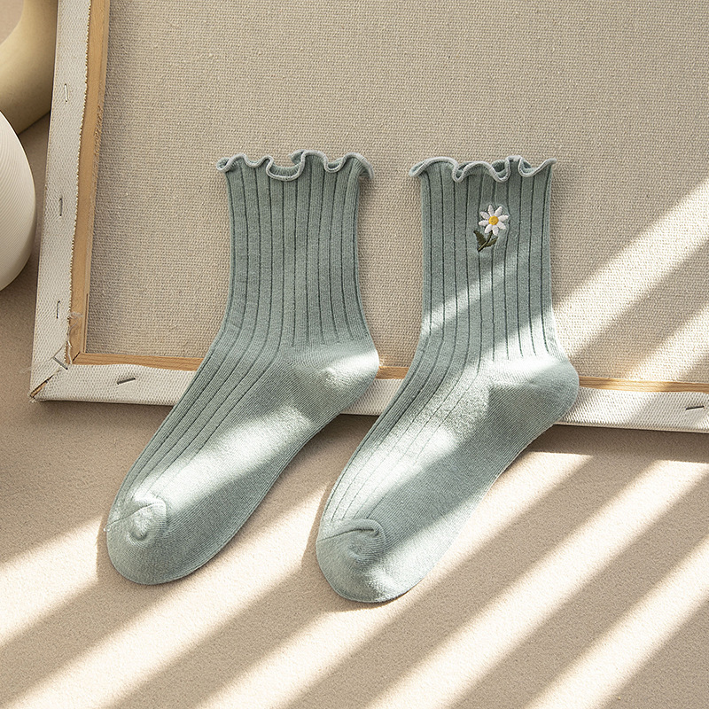 봄 새로운 면 달콤한 레이스 미드 튜브 여성 양말 유행 모든 경기 Eaglear 작은 꽃 자수 일본 스택 양말스토어 가기