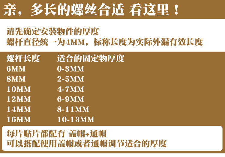 • 6x6cm 나사 스틱 나사 길이 10mm 고정 5-7mm 두께