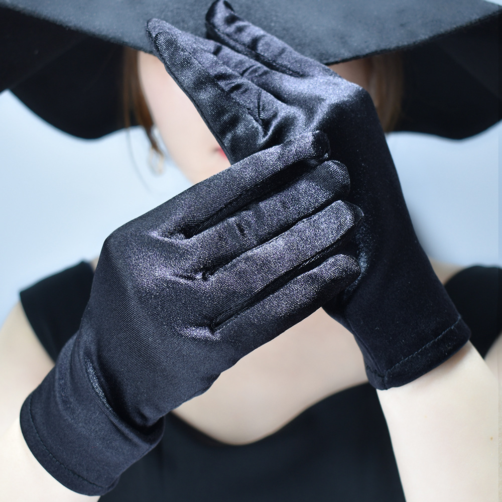 짧은 새틴 이브닝 원피스 의식 장갑 밝은 라이크라 무도회 성능 장갑 스트레치 새틴 웨딩 장갑