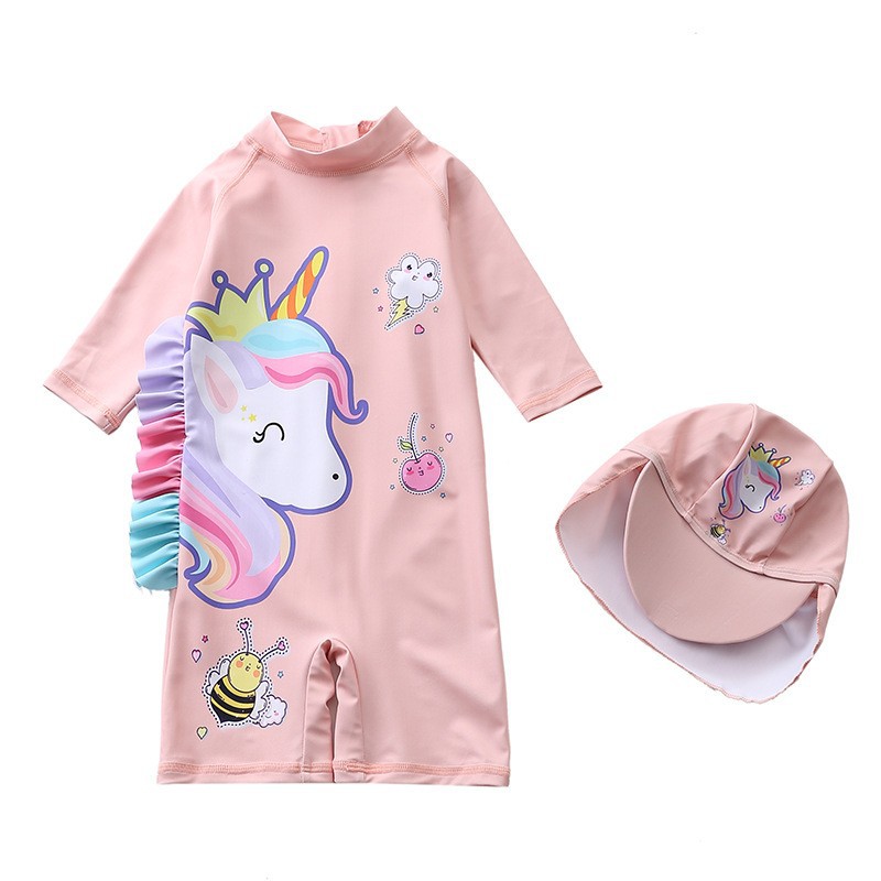 어린이 수영복 여성용 원피스 수영복 유럽과 미국 큰 중소 어린이 서핑 세트 아기의 긴팔 자외선 차단제 여아 수영복