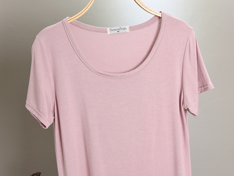 여름 얇은 슬림 핏 하프 슬리브 모달 라운드 넥 반팔 티셔츠 단색 탑 플러스 사이즈 여성의 느슨한 베이스 셔츠스토어 가기