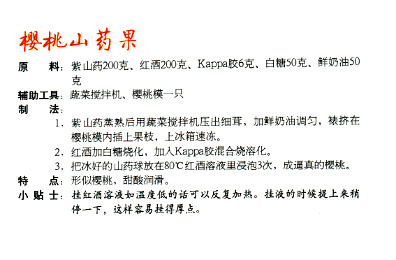 【产品用途】:樱桃鹅肝.樱桃山药等樱桃形状菜品制作