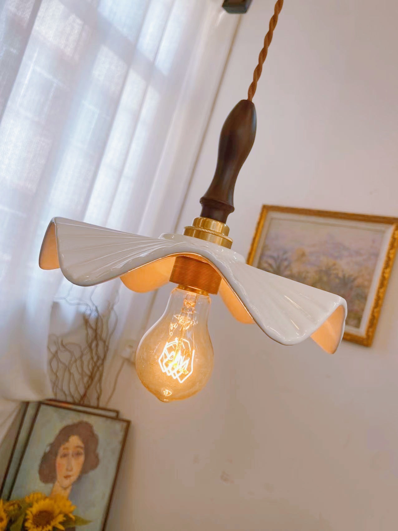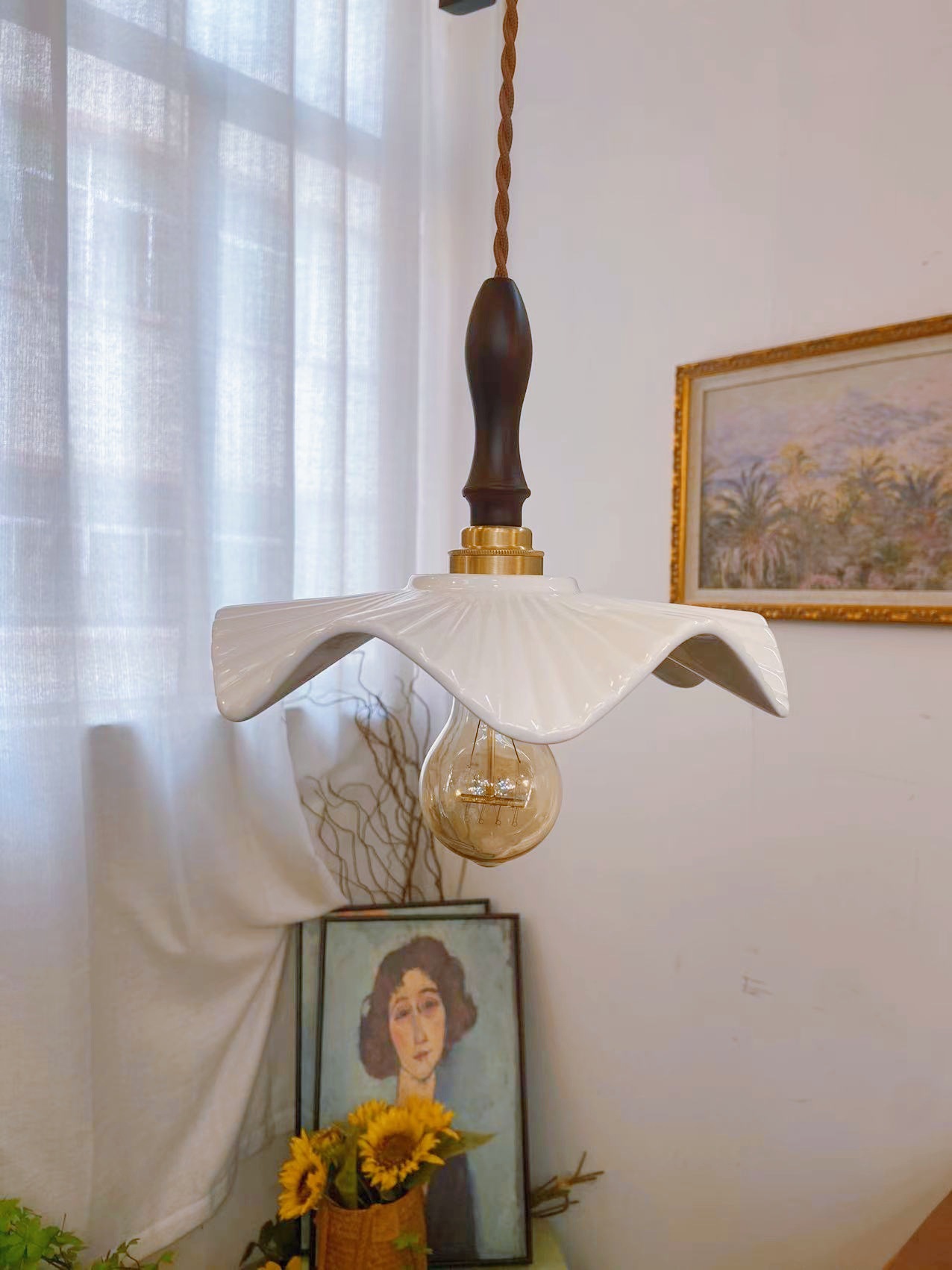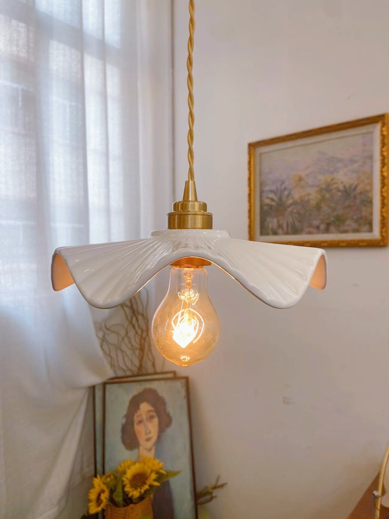 북유럽 화이트 주름 세라믹 샹들리에 일본식 레스토랑 및 홈스테이 침대 옆 침실 거실 빈티지 황동 벽 램프스토어 가기